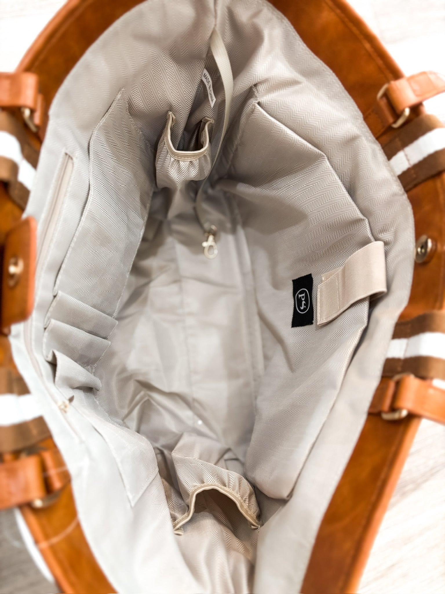 Stay organized and stylish with our Woven Tiffany Organizer Tote! This versatile bag is perfect for school or as an everyday accessory. With tons of pockets and internal organization, it's also a great option for a school computer bag. Keep everything in its place and make a statement with this must-have tote!