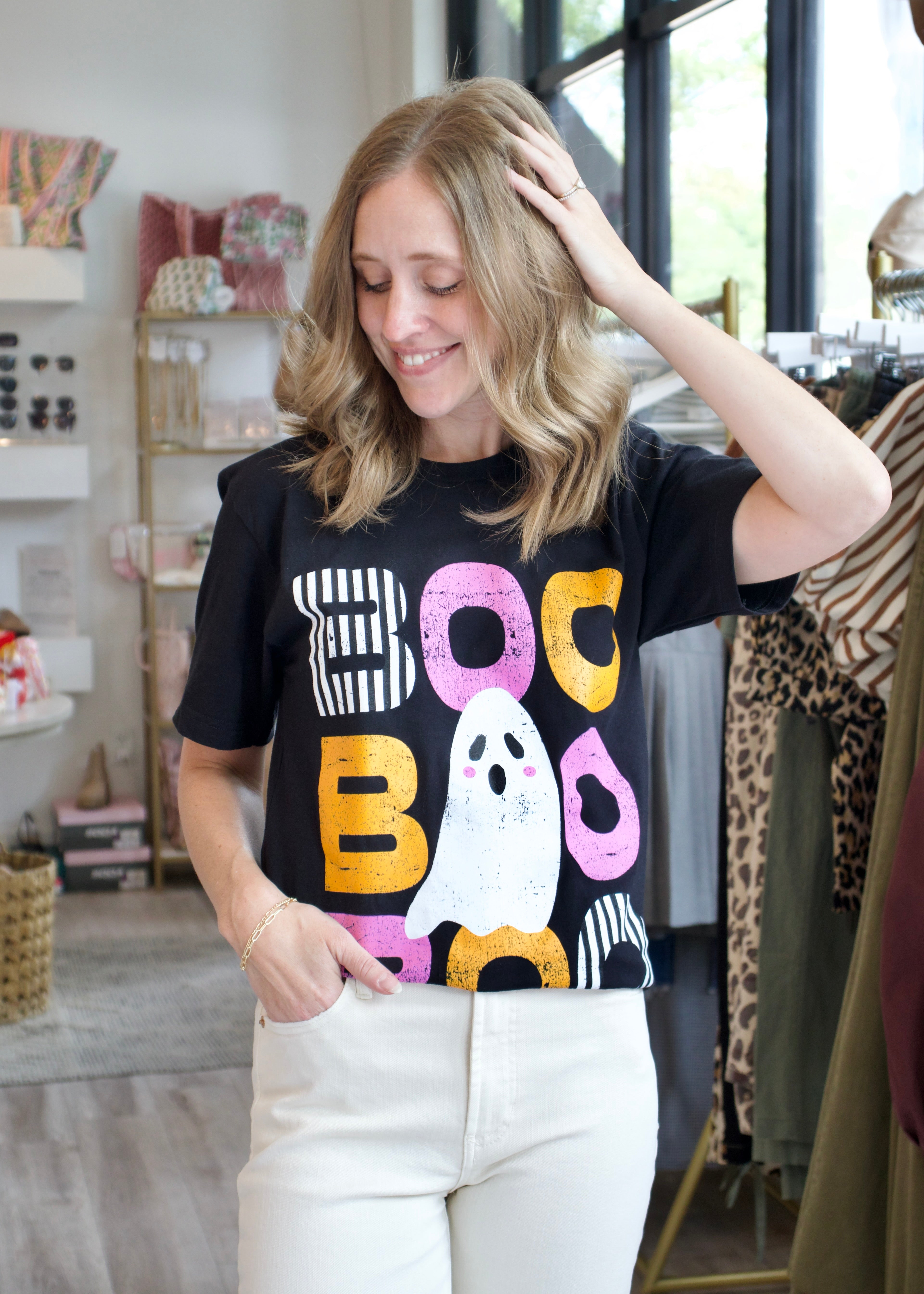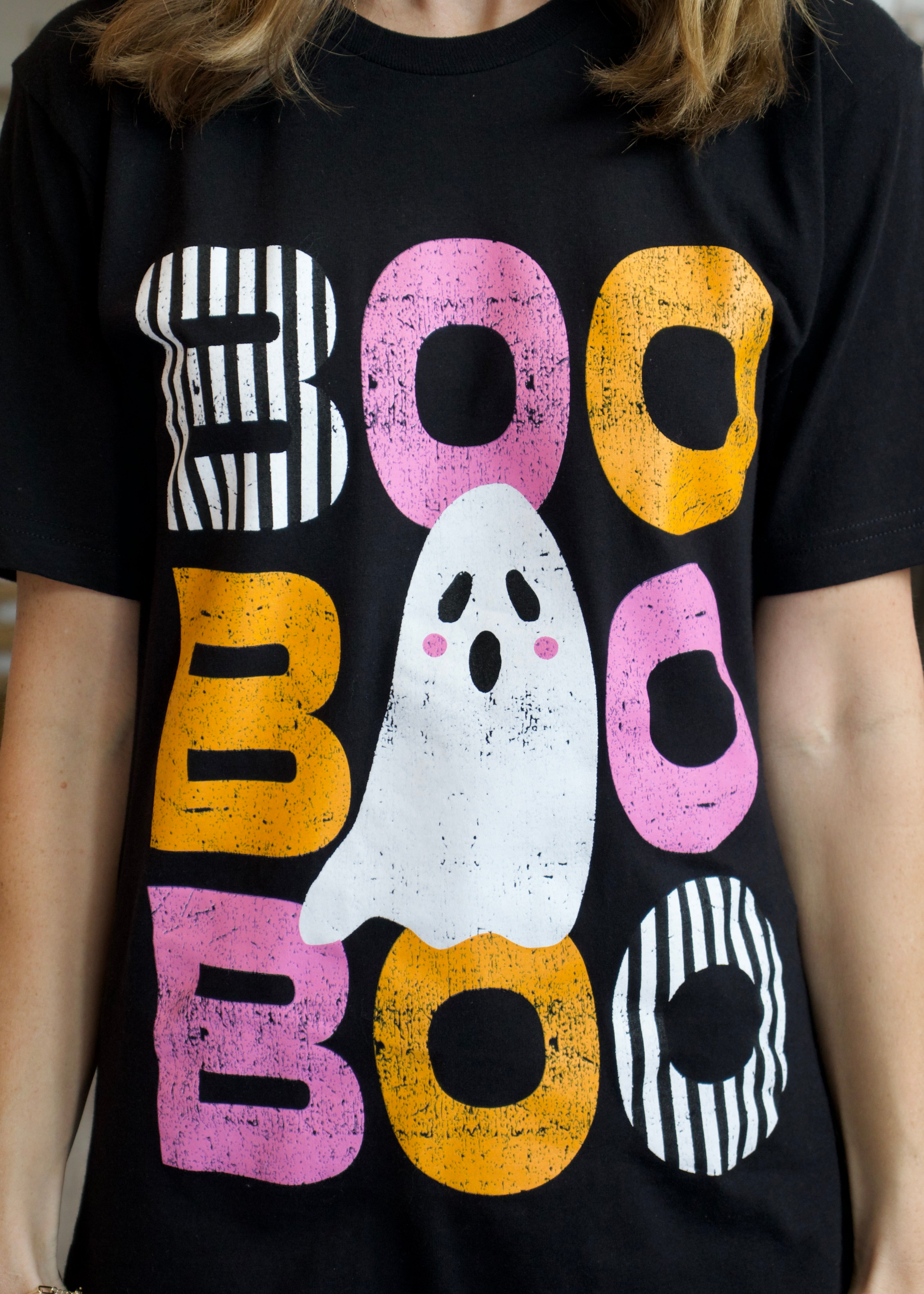 Celebrate spooky style with the Boo Stacked Tee, featuring a playful ghost graphic that adds a dash of fun to your look. Perfect for casual days or Halloween festivities, this tee combines comfort with a charming design that’s sure to turn heads and spread smiles. Embrace the spirit of the season or just keep your style lighthearted all year.