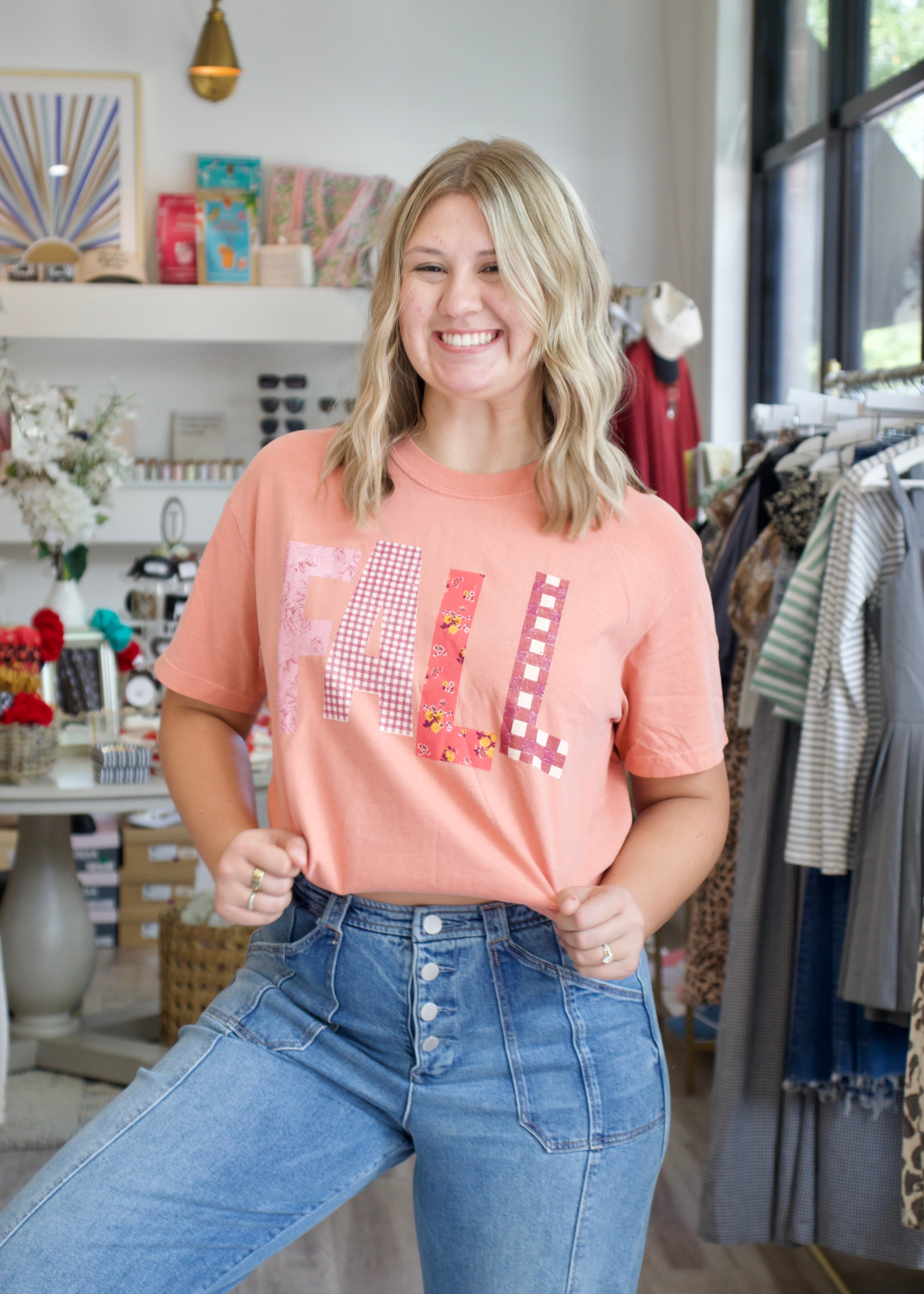 Celebrate the cozy spirit of autumn with the Fall Picnic Tee. Featuring vibrant, fun patterned letters that capture the warmth and joy of fall gatherings, this graphic tee is perfect for casual days and seasonal outings. Its comfortable fit makes it easy to wear all day, whether you're enjoying a picnic or a stroll amid colorful leaves. Add a playful, seasonal touch to your wardrobe with this standout tee.