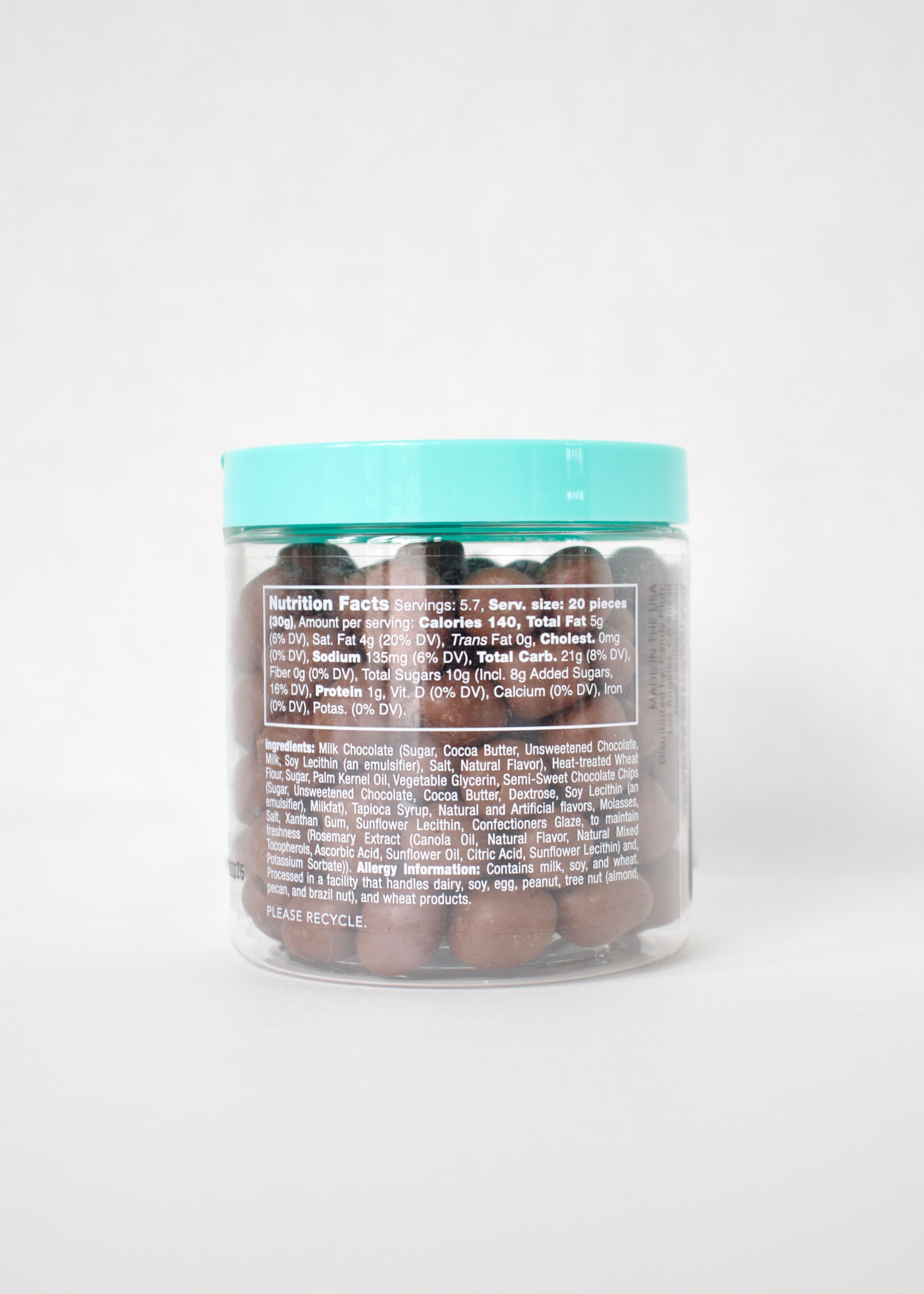 Like dough more than the actual cookie? This is your candy! With a vanilla base dotted with chocolate chips, then dipped in milk chocolate, these little nuggets are dough-tally delicious!