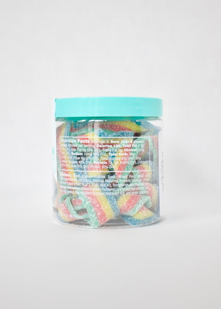Equal parts flavorful and colorful, these bright, tart rainbow ribbon belts are sure to bring a smile to your face and a happy kick to your taste buds.