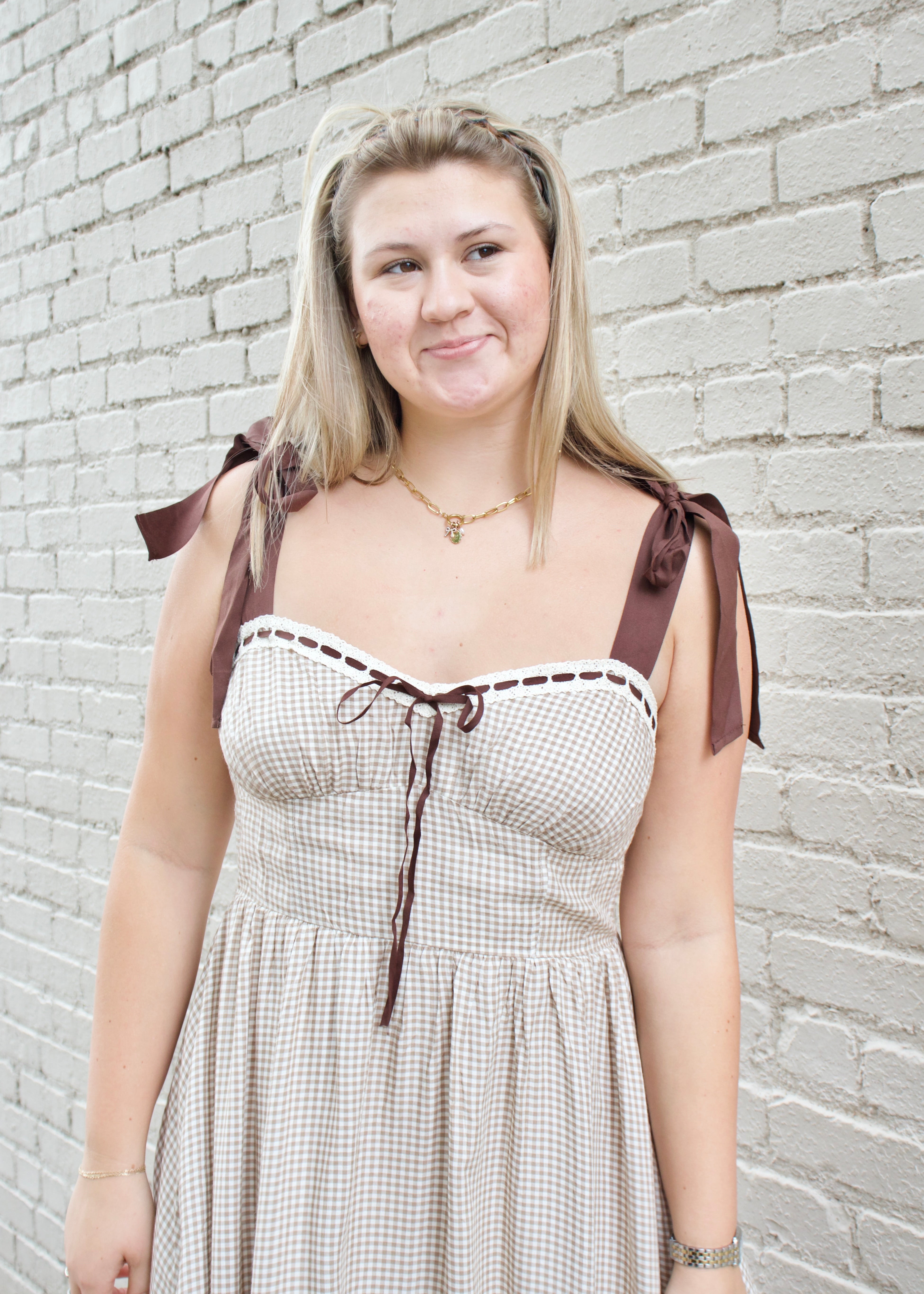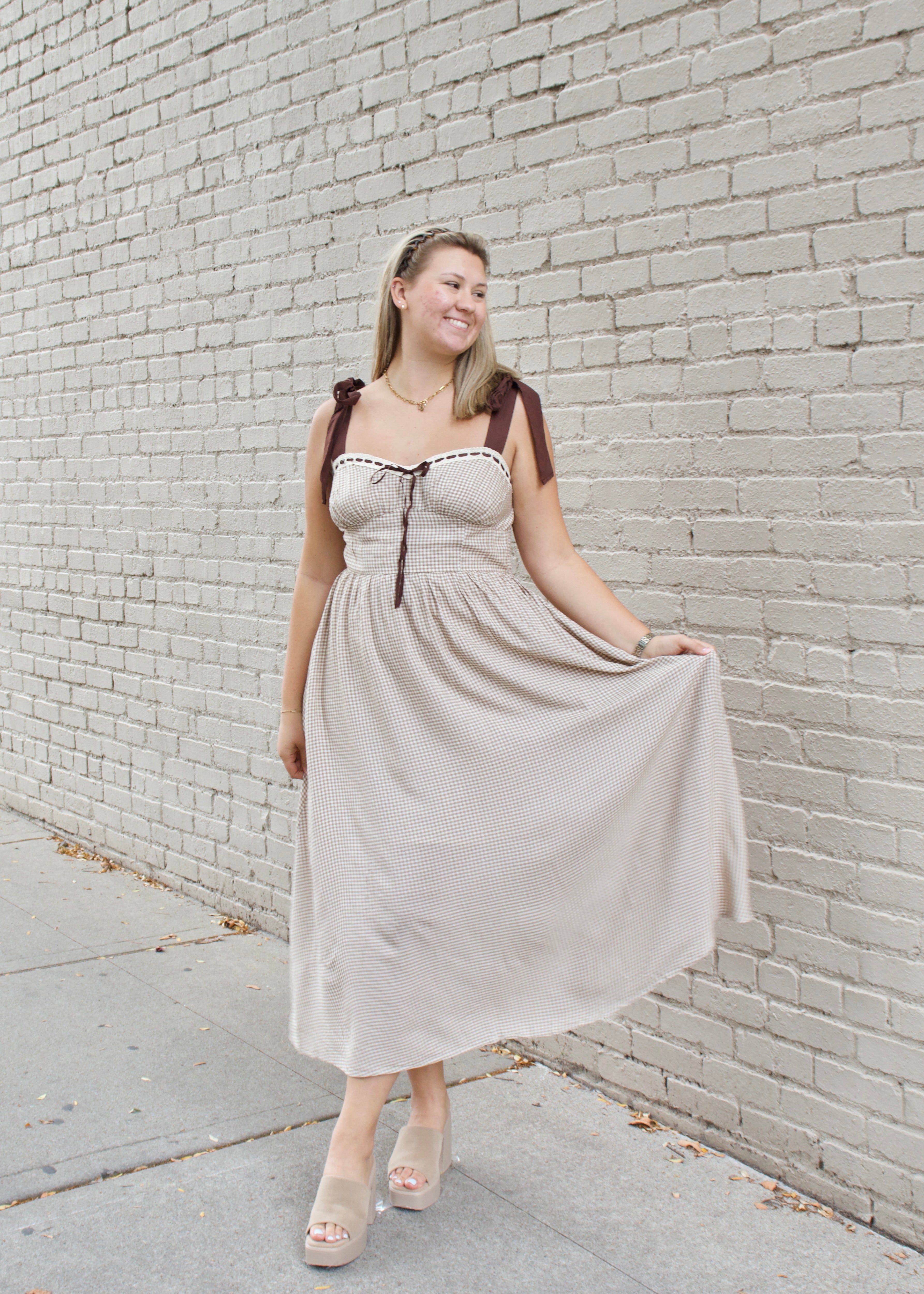 Elevate your wardrobe with the Plaid Ribbon Corset Midi Dress in Khaki. This dress features a flattering corset silhouette enhanced by delicate ribbon details that highlight your waist, combining classic plaid with modern elegance. The midi length offers a versatile look perfect for both daytime sophistication and evening charm. Comfortable yet stylish, it’s an effortless way to make a confident statement wherever you go.