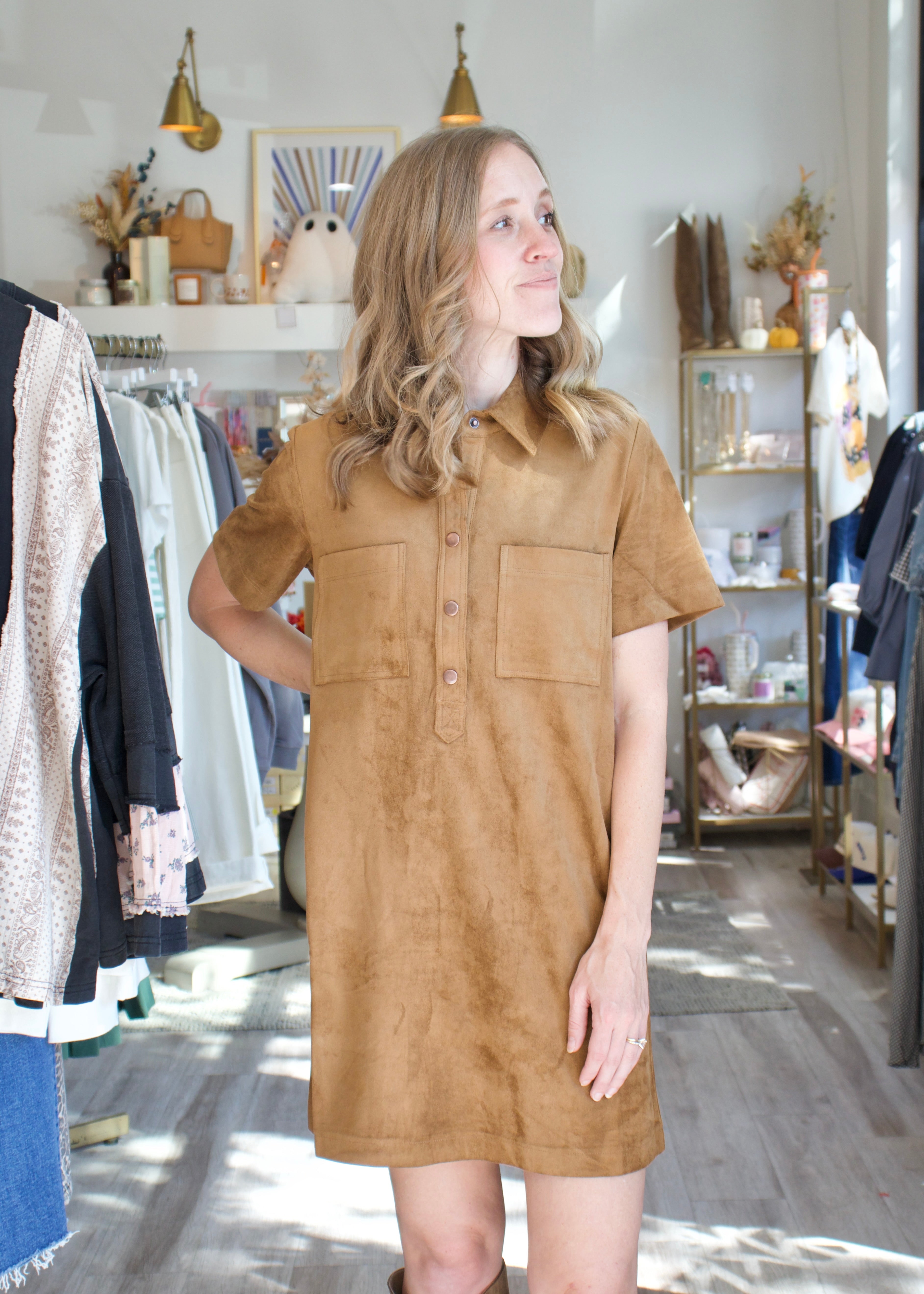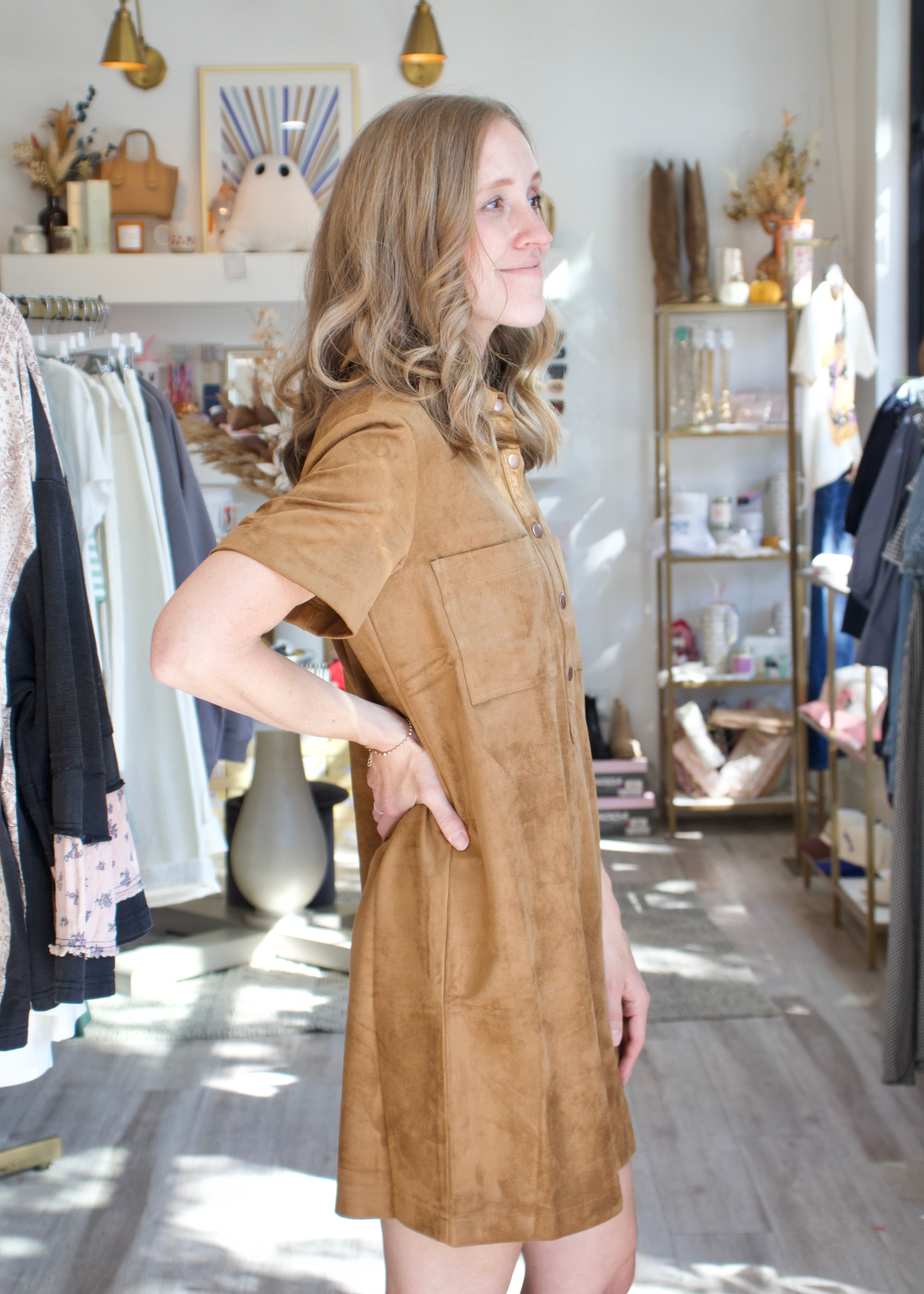 Elevate your style with the Sydney Suede Mini Dress in Coconut. Crafted from soft suede, this mini dress features a chic collar that adds a touch of sophistication. Its flattering silhouette makes it perfect for both day and night, ensuring you look effortlessly stylish wherever you go. Embrace timeless elegance with a modern twist in this must-have wardrobe essential.