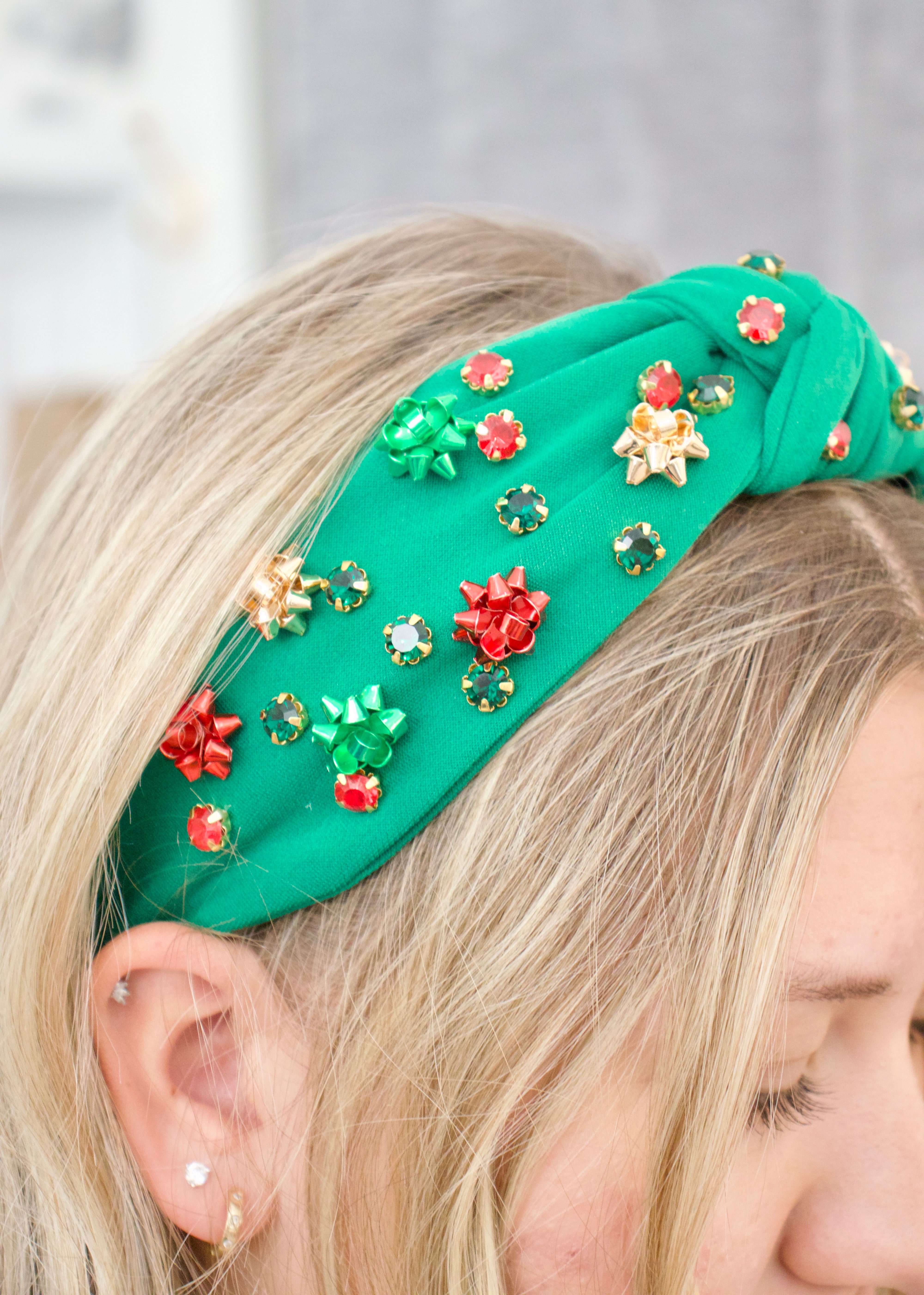 Tie on some festive cheer with this adorable gift bow headband! Perfect for holiday parties, family photos, or spreading Christmas spirit wherever you go. The knotted design adds a playful touch that's sure to get smiles. Green never looked so gift-wrapped!