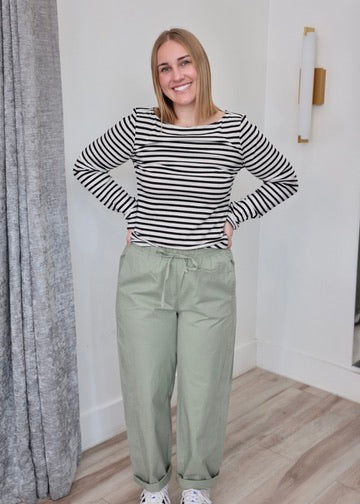 Effortlessly comfortable and versatile, our olive Cotton Crop Pants offer a drawstring waist for a perfect fit and pockets for added convenience. Made of soft cotton, these pants are perfect for a day of running errands or lounging around. Elevate your style and comfort with these must-have pants!