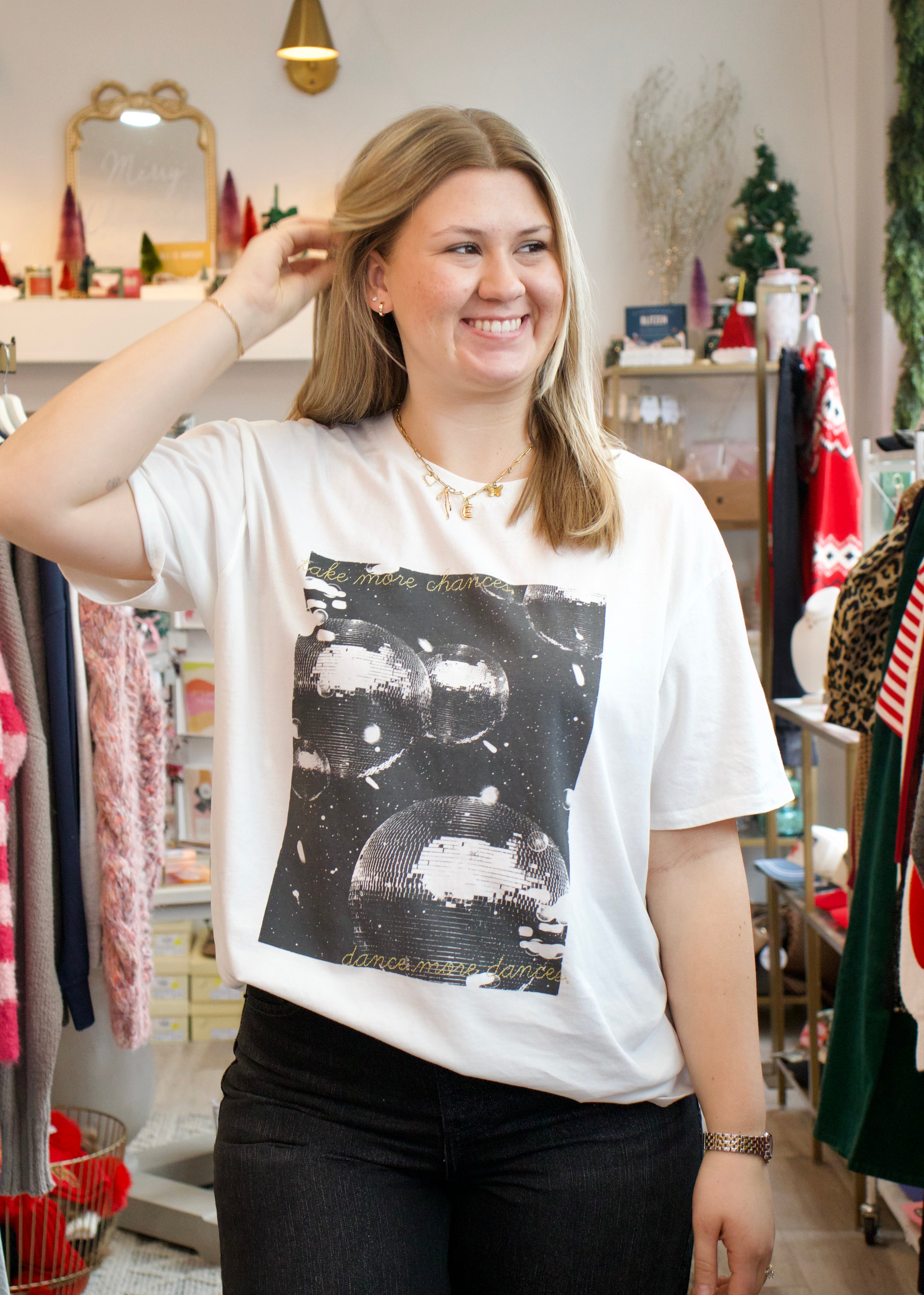 Get ready to boogie in the Dance More Dances City Tee from Z Supply in crisp Sea Salt! This playful graphic tee features a fun disco ball design that celebrates good vibes and endless dancing. The soft, comfortable cotton keeps you cool while the eye-catching graphic adds personality to your everyday look. Perfect for casual hangouts, music festivals, or whenever you want to spread those feel-good dance floor energy vibes. Pair it with your favorite jeans, shorts, or layer it under a jacket for effortless style. Simple, fun, and totally wearable—this tee is your ticket to looking cool while channeling your inner disco dancer!