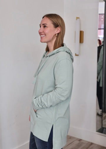 Throw on the Jones Hoodie and get cozy in effortless style. This versatile green layer is your new go-to for everything from lazy Sundays to quick errands. The front pocket keeps your hands happy and your essentials close, while the relaxed fit makes it perfect for layering over tees or wearing solo. Simple, comfortable, and always in season.