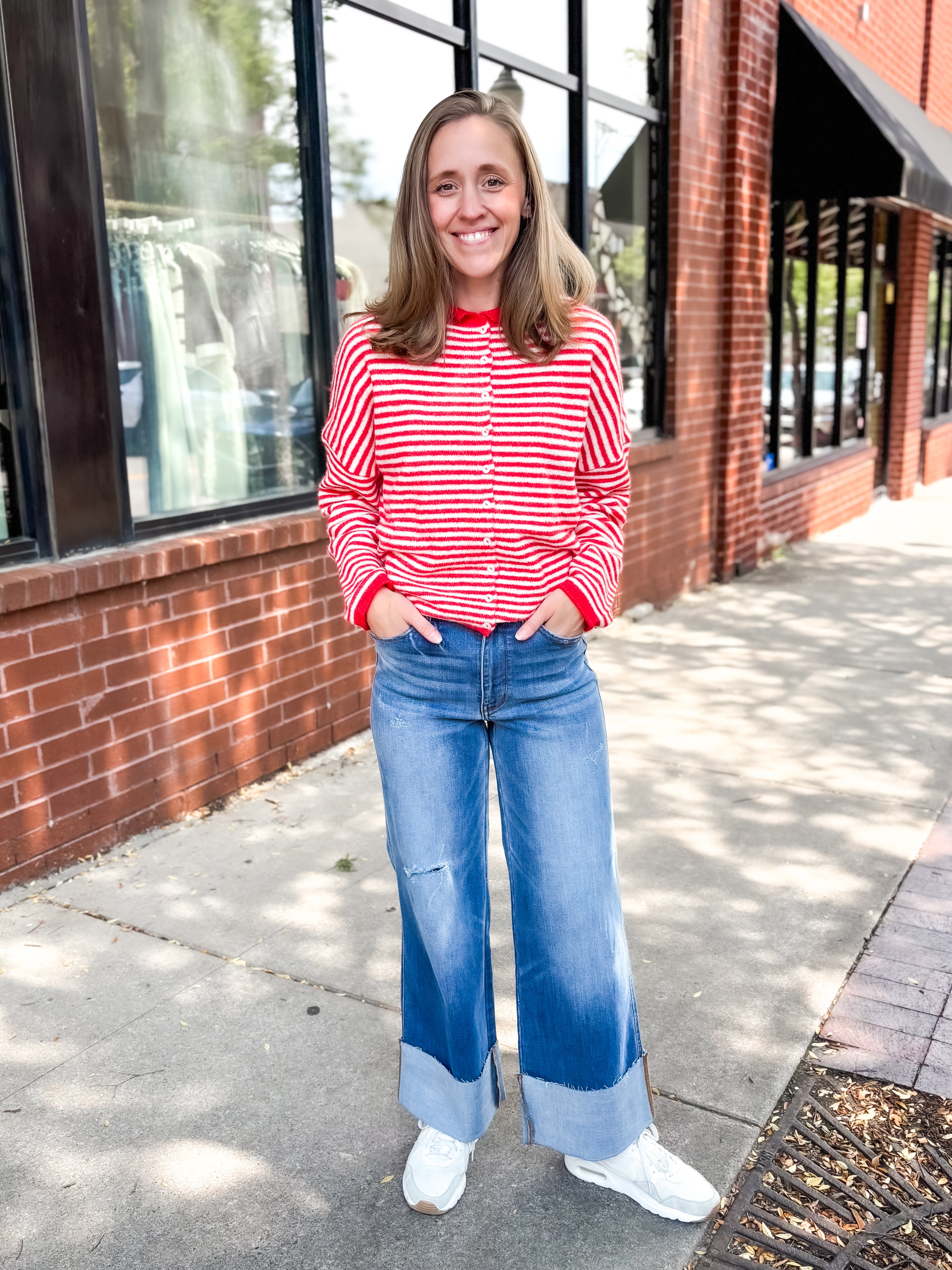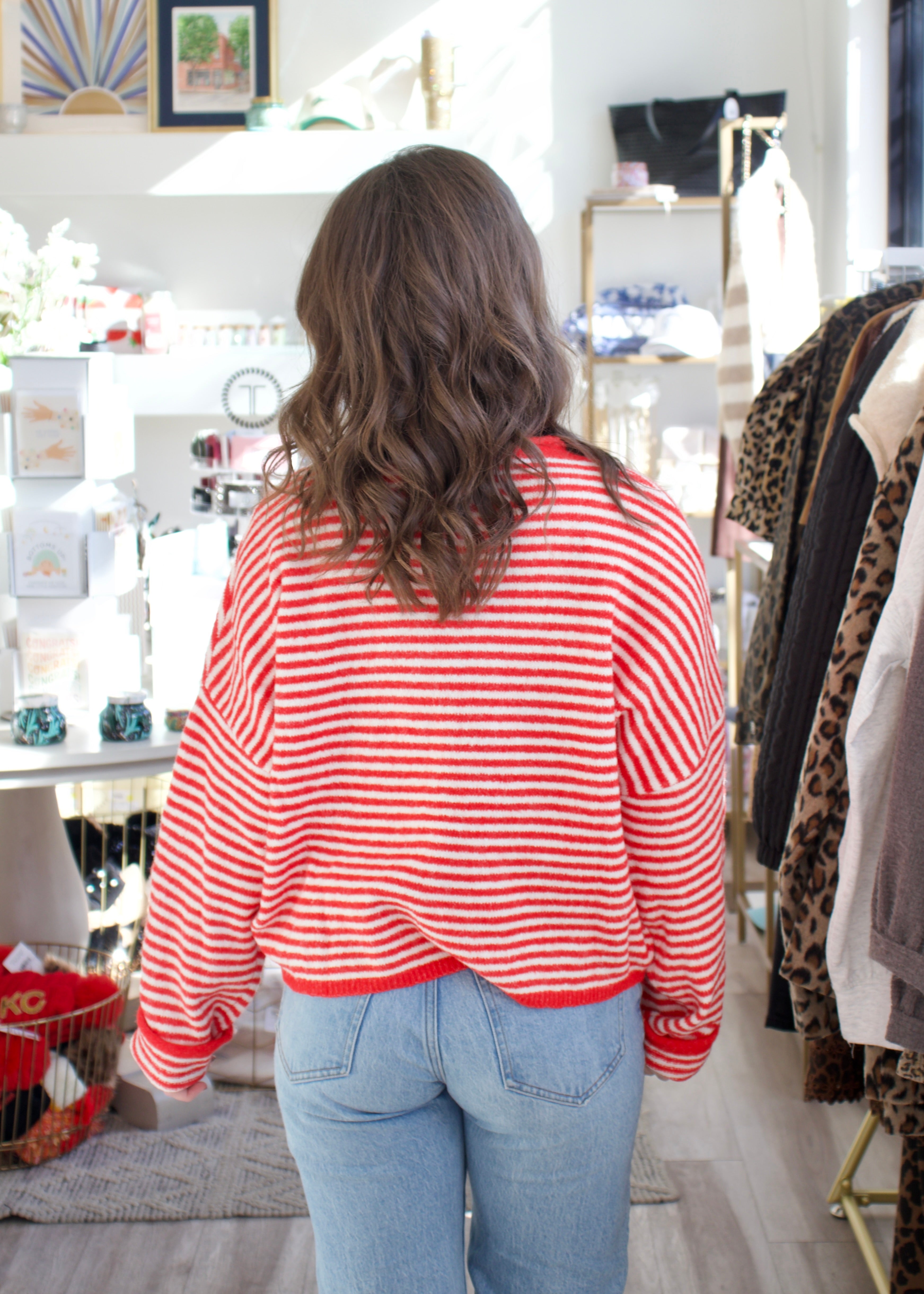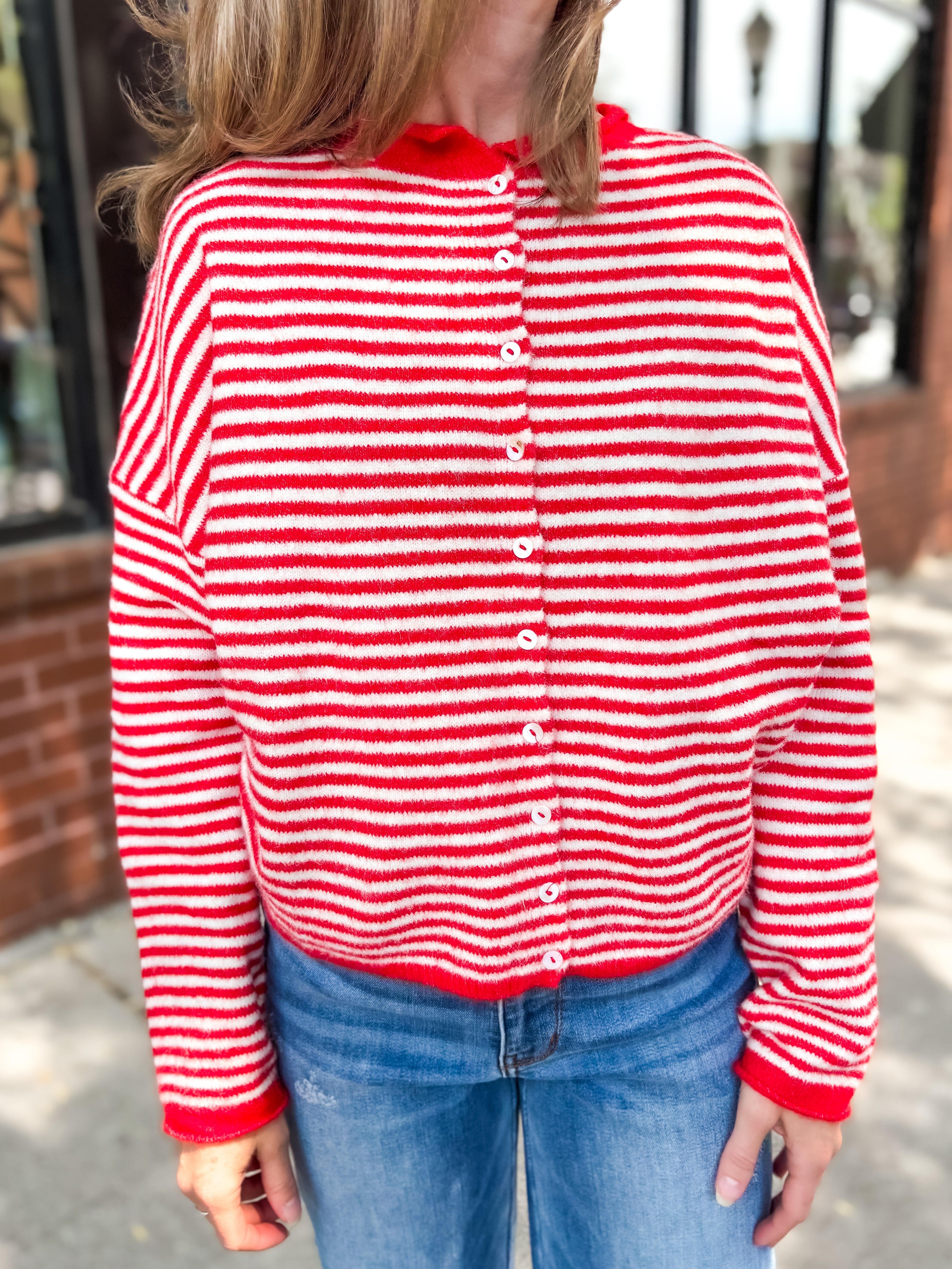 Elevate your wardrobe with our Mini Striped Piper Cardigan in warm brown. Featuring a classic front button design and subtle mini stripe details, this cardigan combines timeless style with cozy comfort. Perfect for layering, it adds a refined touch to any outfit while keeping you comfortably stylish throughout your day.