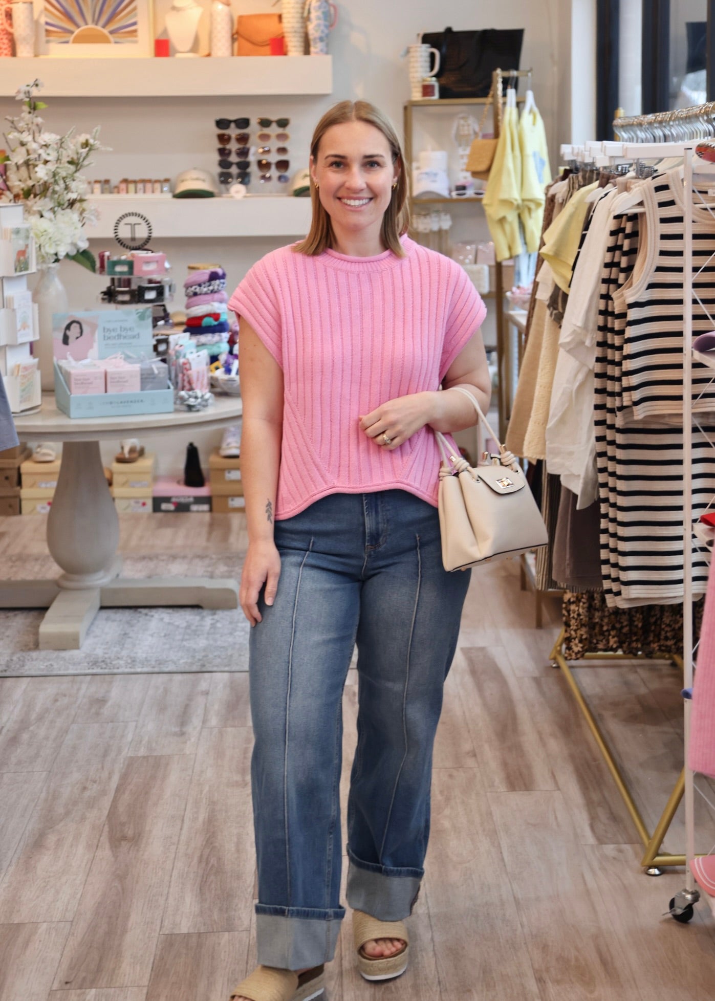 Elevate your everyday wardrobe with this classic ribbed sweater top in a soft pink hue. The textured ribbed knit provides subtle visual interest while offering a flattering, form-fitting silhouette. Perfect for layering or wearing solo, this versatile piece transitions seamlessly from casual weekends to polished office settings. The quality construction ensures durability and lasting comfort, making it a reliable staple you'll reach for season after season.