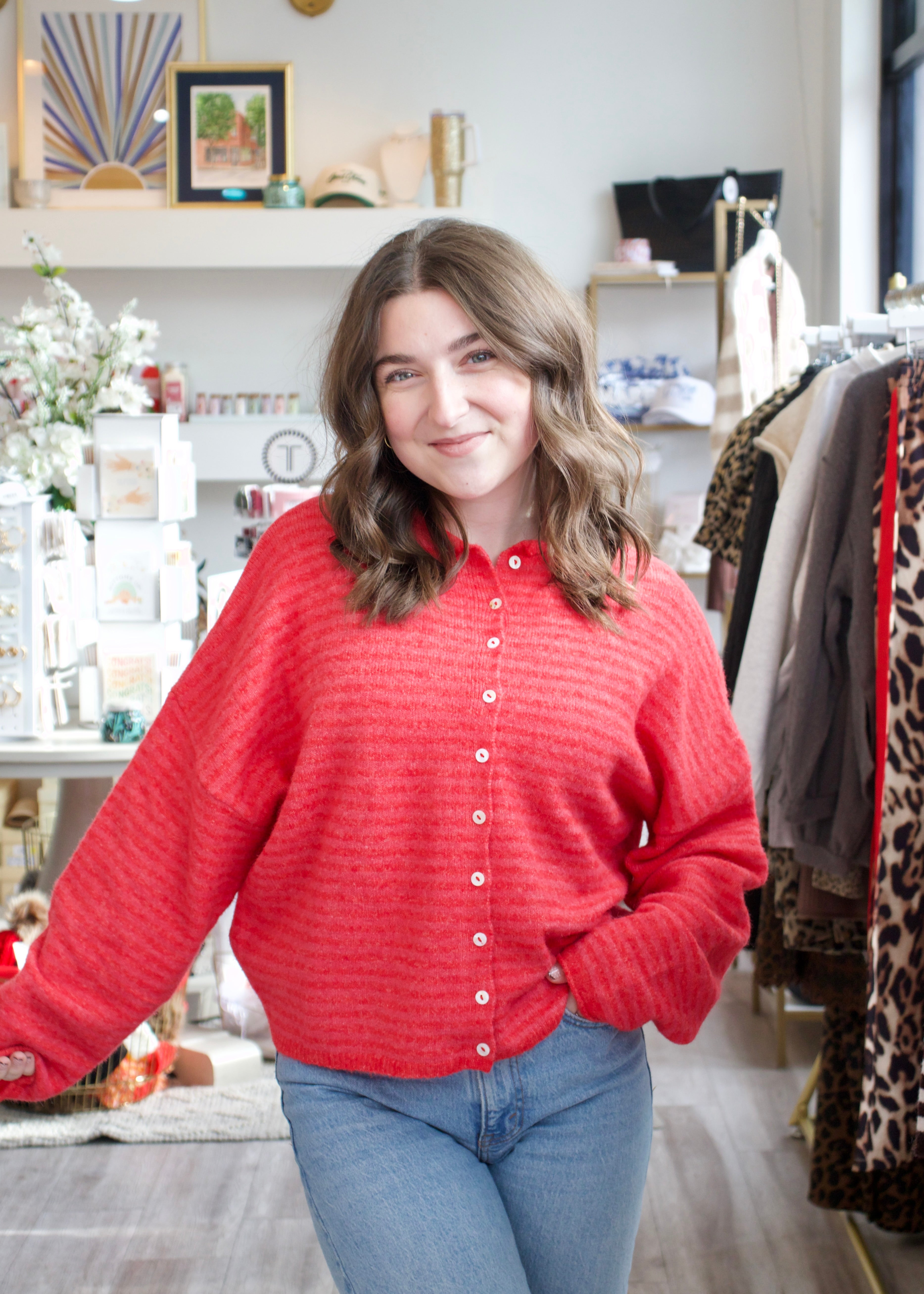 Elevate your wardrobe with our Mini Striped Piper Cardigan in cherry red. Featuring a classic front button design and subtle mini stripe details, this cardigan combines timeless style with cozy comfort. Perfect for layering, it adds a refined touch to any outfit while keeping you comfortably stylish throughout your day.