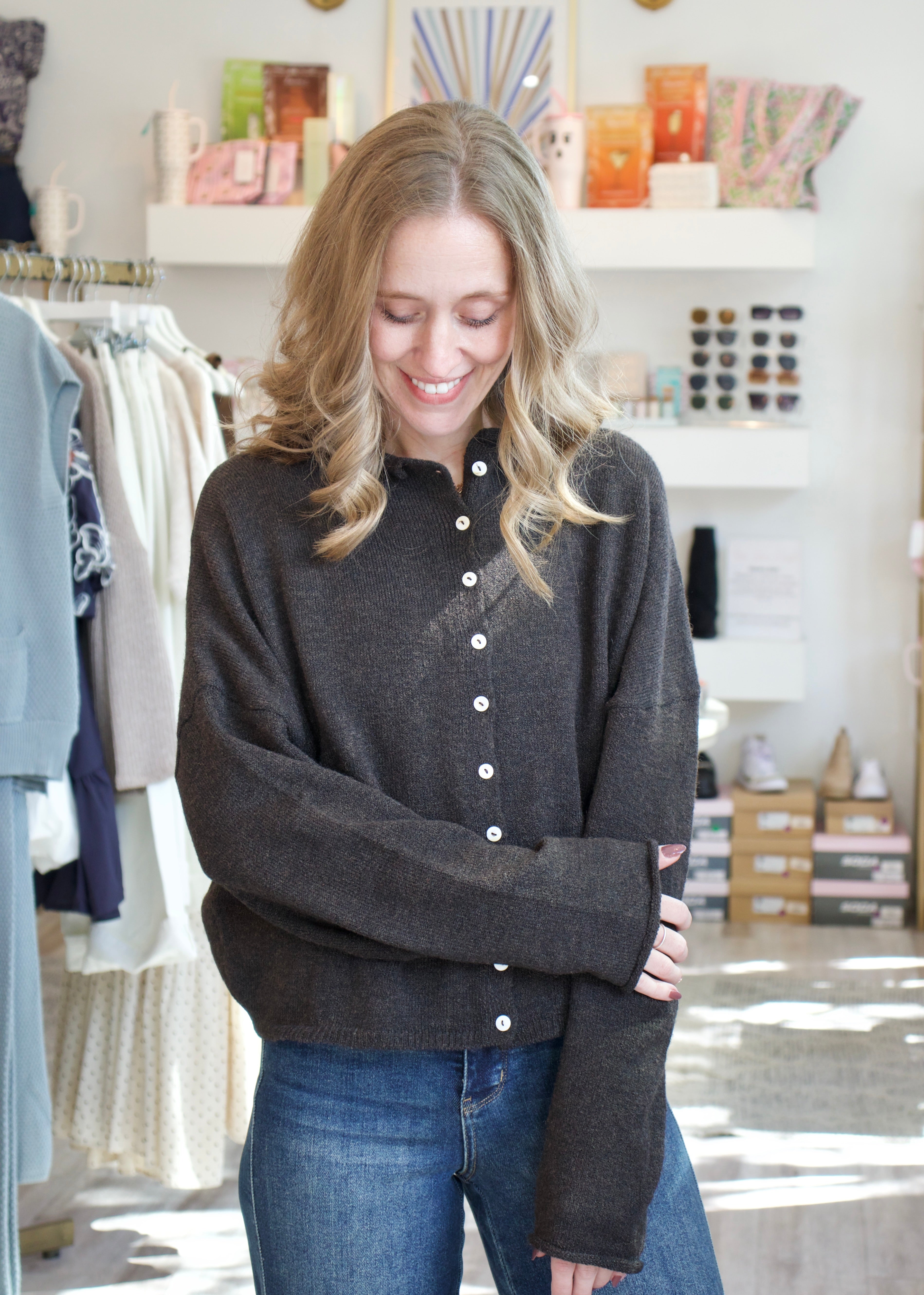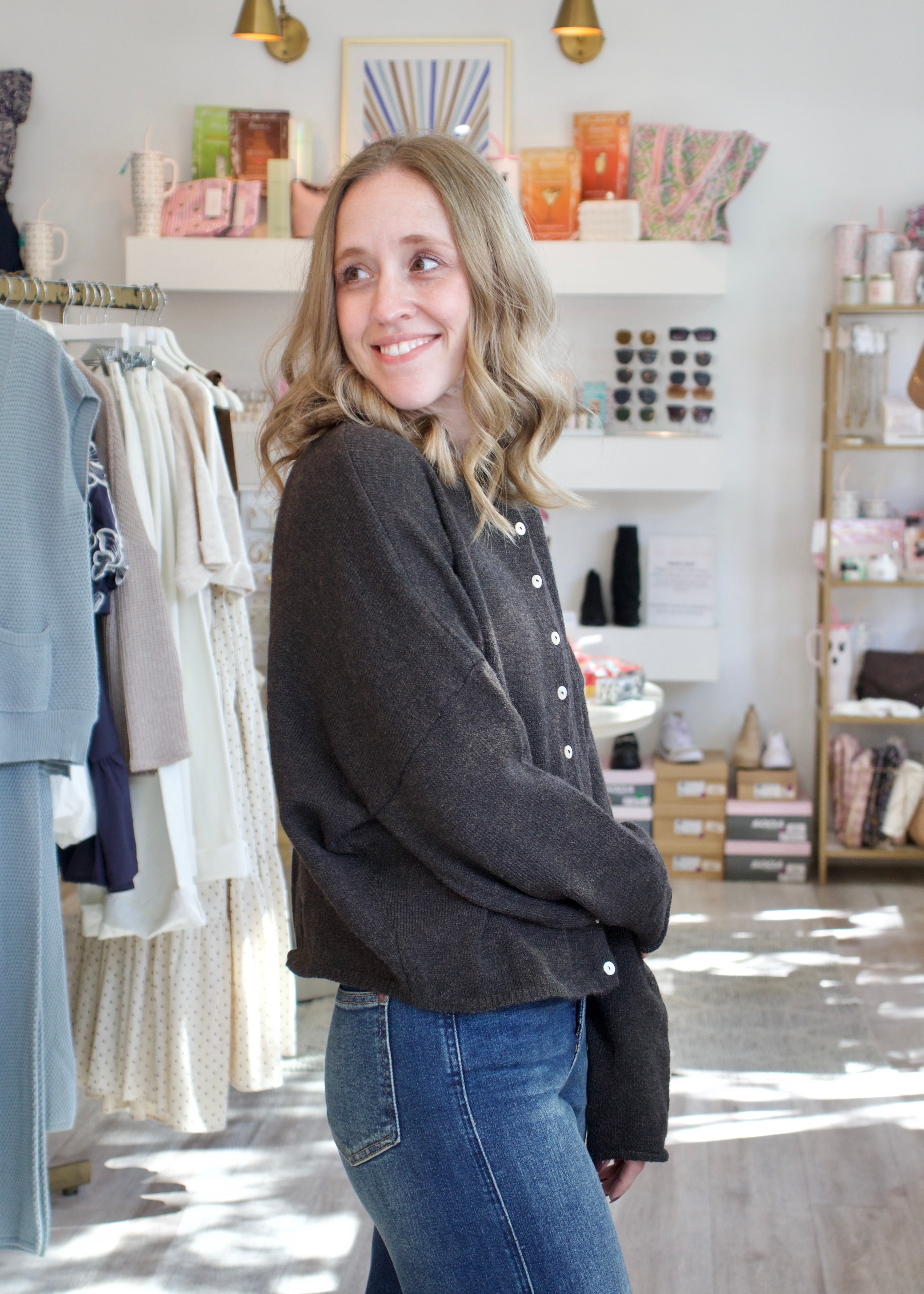 The Piper Cardigan in Chocolate is a versatile wardrobe essential, featuring a classic front button design for easy wear. Its timeless style pairs effortlessly with any outfit, offering both comfort and sophistication. Perfect for layering, this signature piece adds a polished touch to your everyday look.
