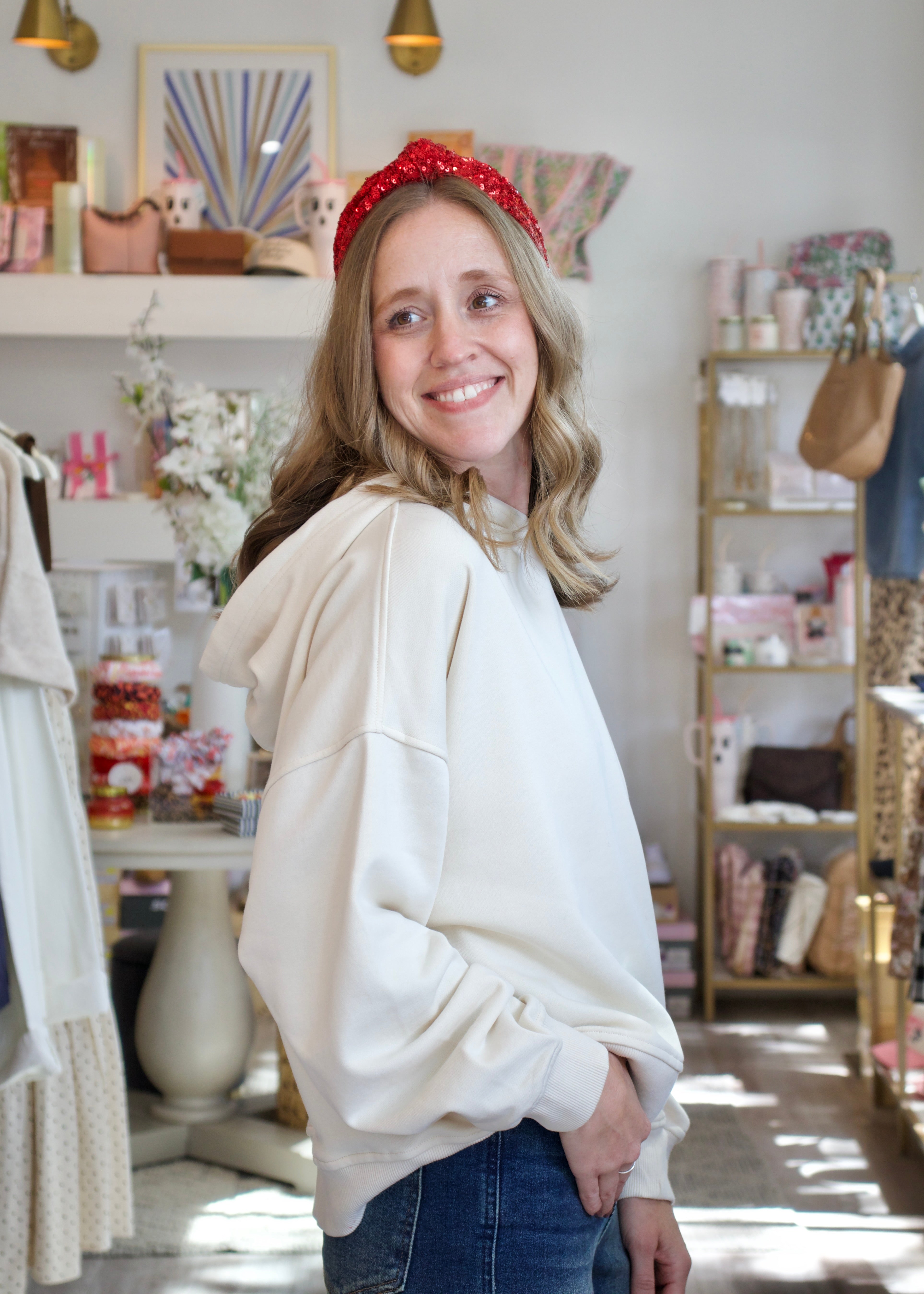 Elevate your casual wardrobe with the Bow Crop Hoodie in Ecru. Featuring a charming bow detail, this cropped hoodie blends playful style with cozy comfort. Perfect for layering or wearing on its own, it offers a flattering fit that pairs effortlessly with your favorite high-waisted pieces. Stay stylish and comfortable all day long with this must-have addition to your collection.
