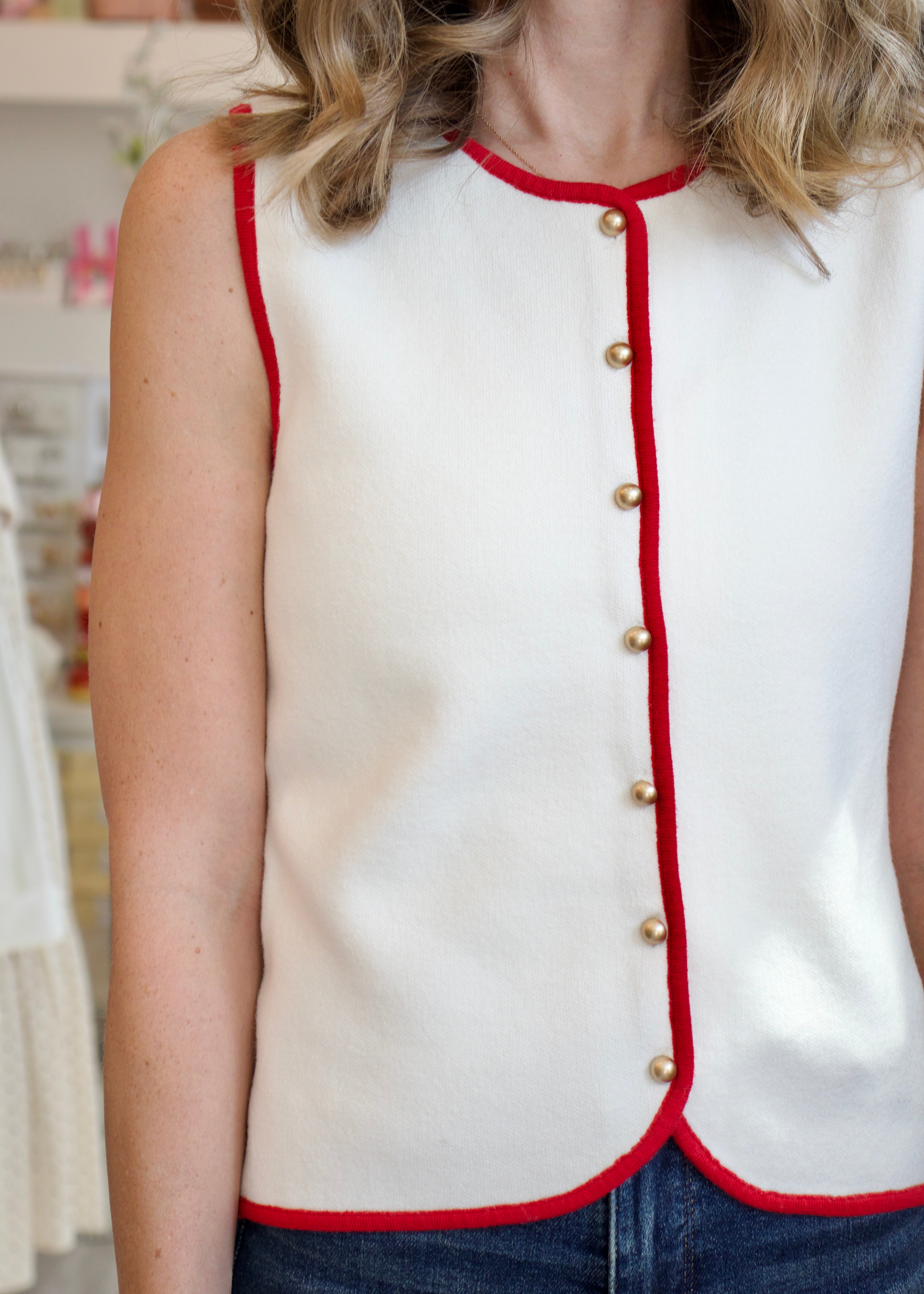 Crew Button Vest - White/Red