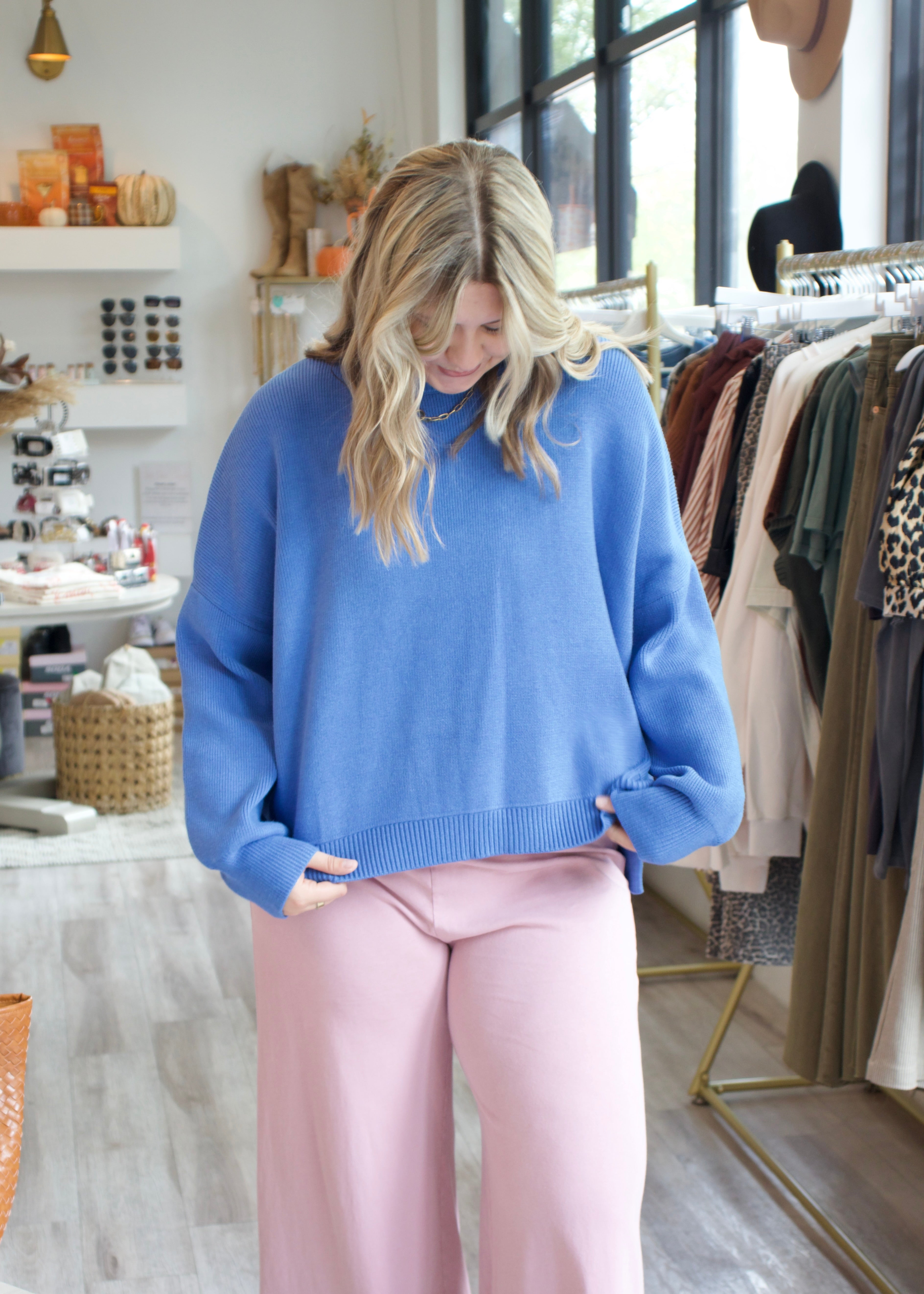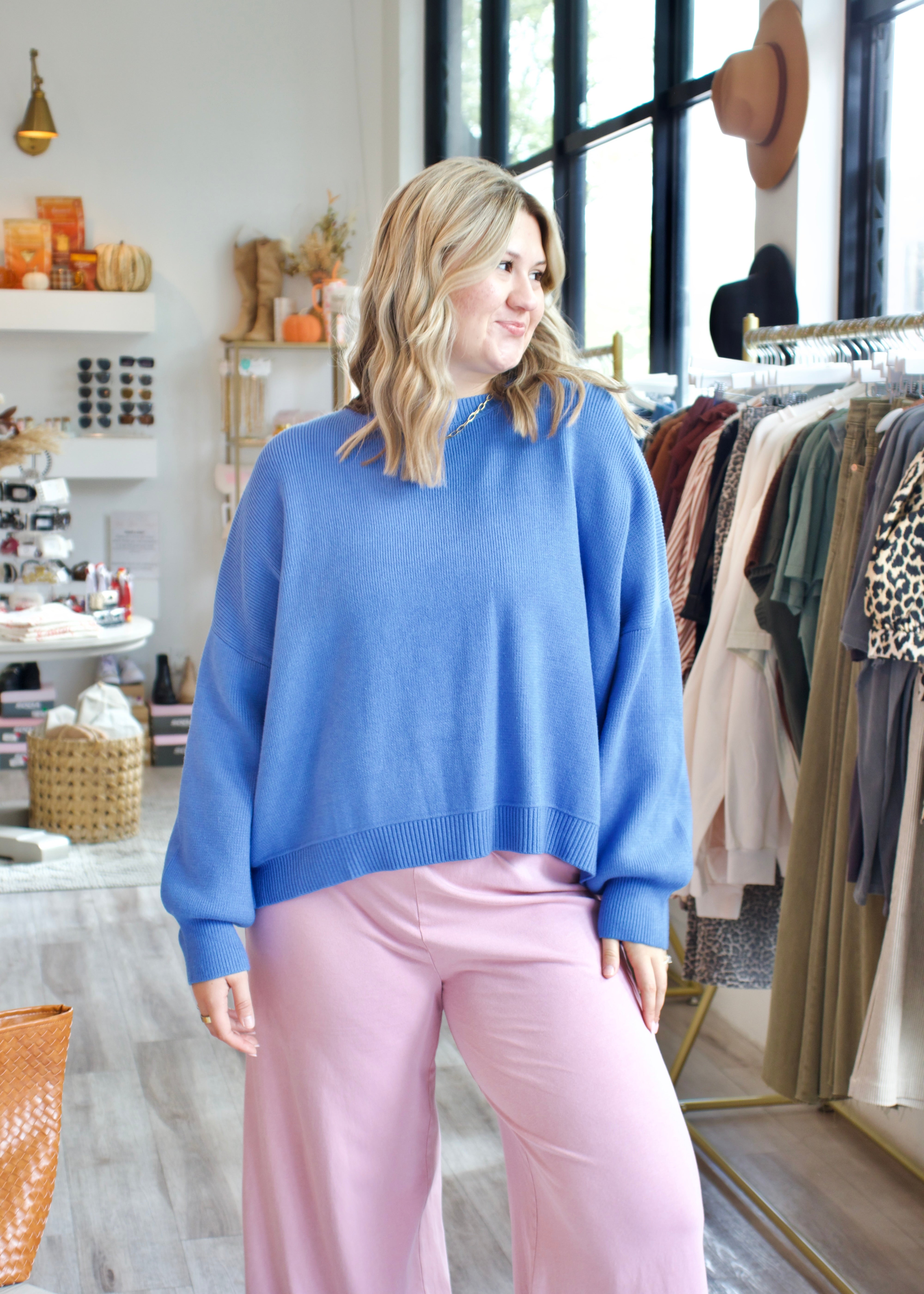 Experience unparalleled comfort with the Drop Shoulder Sweater in Pacific. Its oversized design offers a relaxed fit that moves with you, making it perfect for lounging or layering on cooler days. Crafted for both style and ease, this sweater ensures you stay cozy without sacrificing fashion. Embrace effortless comfort with a piece that complements any casual wardrobe.