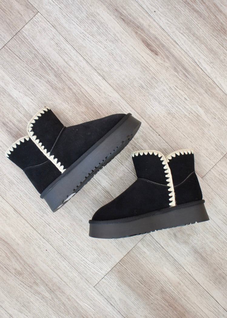 Step into cozy comfort with the Tara Stitch Sherpa Boots in Black. Featuring a plush sherpa lining and durable stitching, these boots provide warmth and style for everyday wear. Their sturdy sole offers reliable traction, making them perfect staples for chilly days. Elevate your cold-weather wardrobe with this essential blend of comfort and practicality.