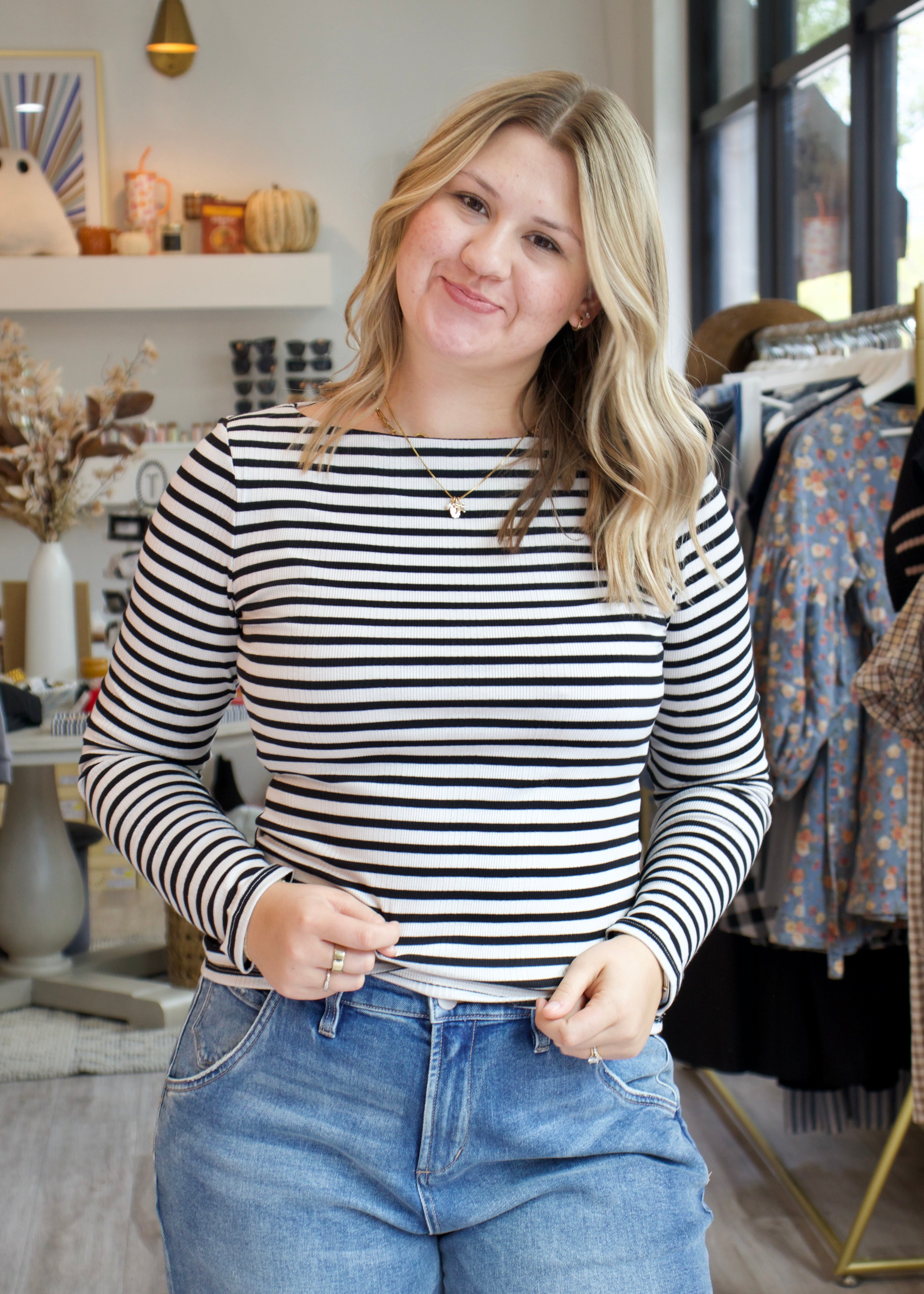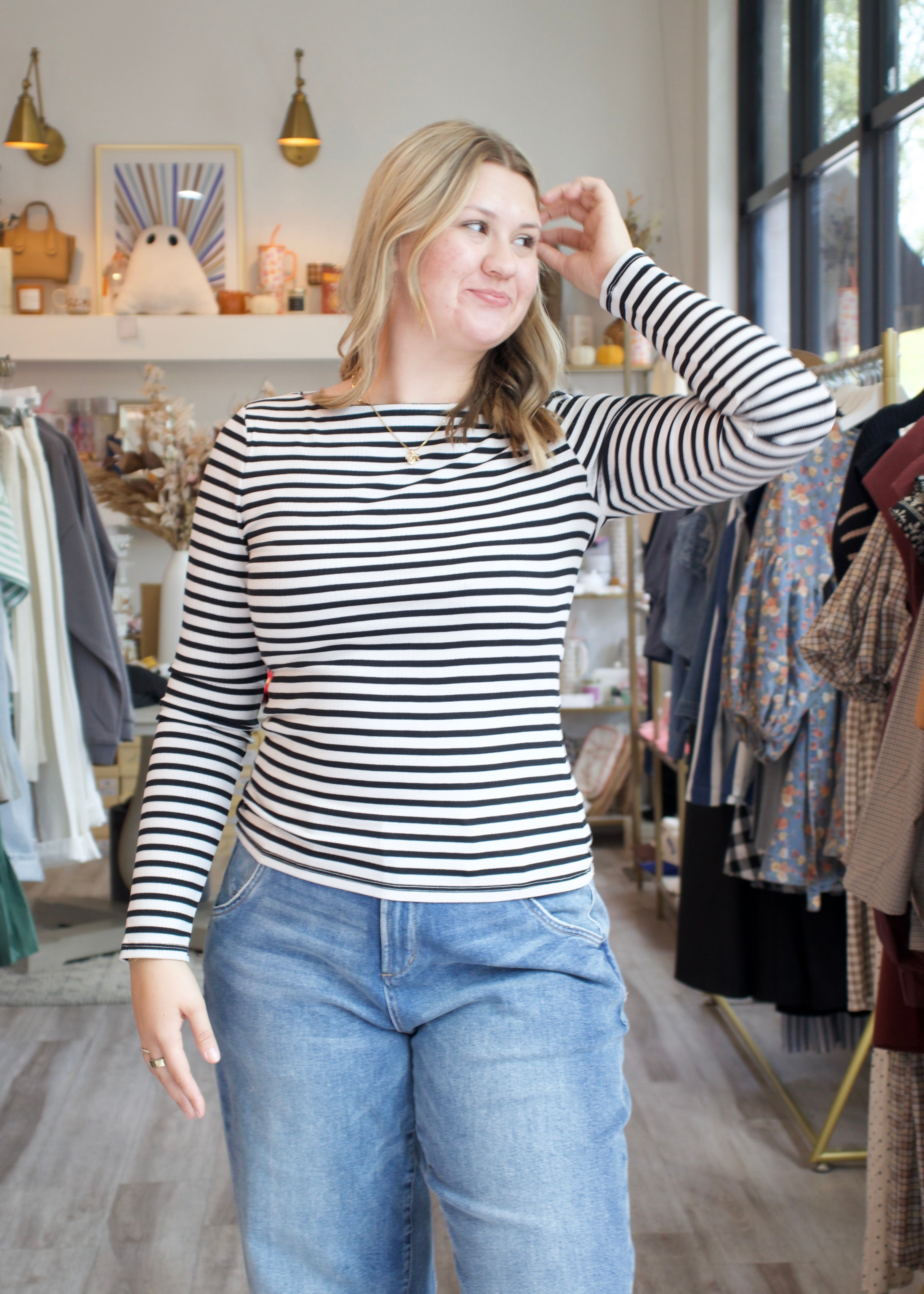 The Pristine Striped Tee in black combines classic style with everyday comfort. Its lightweight fabric and timeless striped design offer effortless versatility, perfect for dressing up or down. Whether paired with jeans or layered under a jacket, this tee adds a sleek, polished look to your wardrobe. Elevate your basics with a piece designed for lasting wear and easy style.
