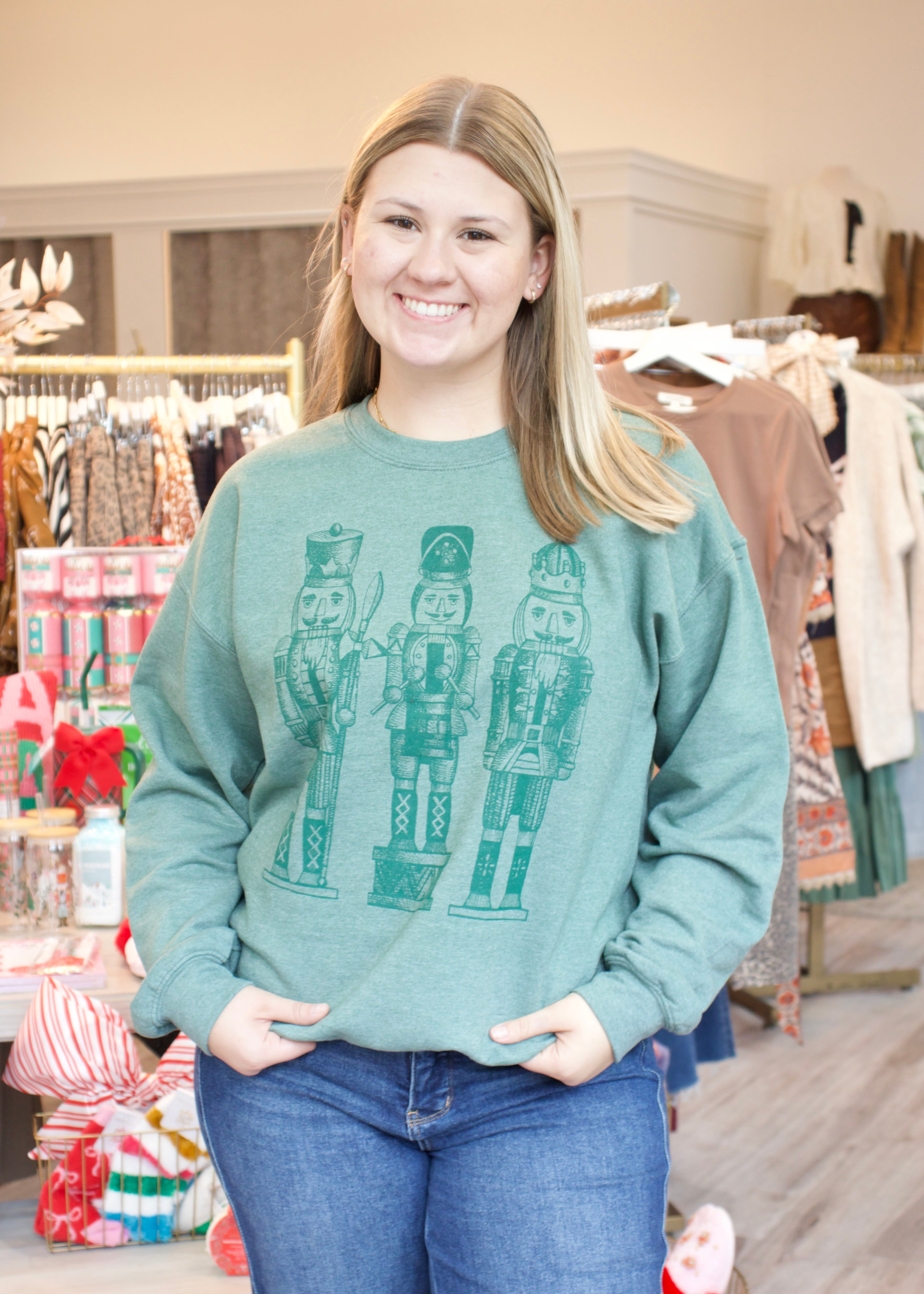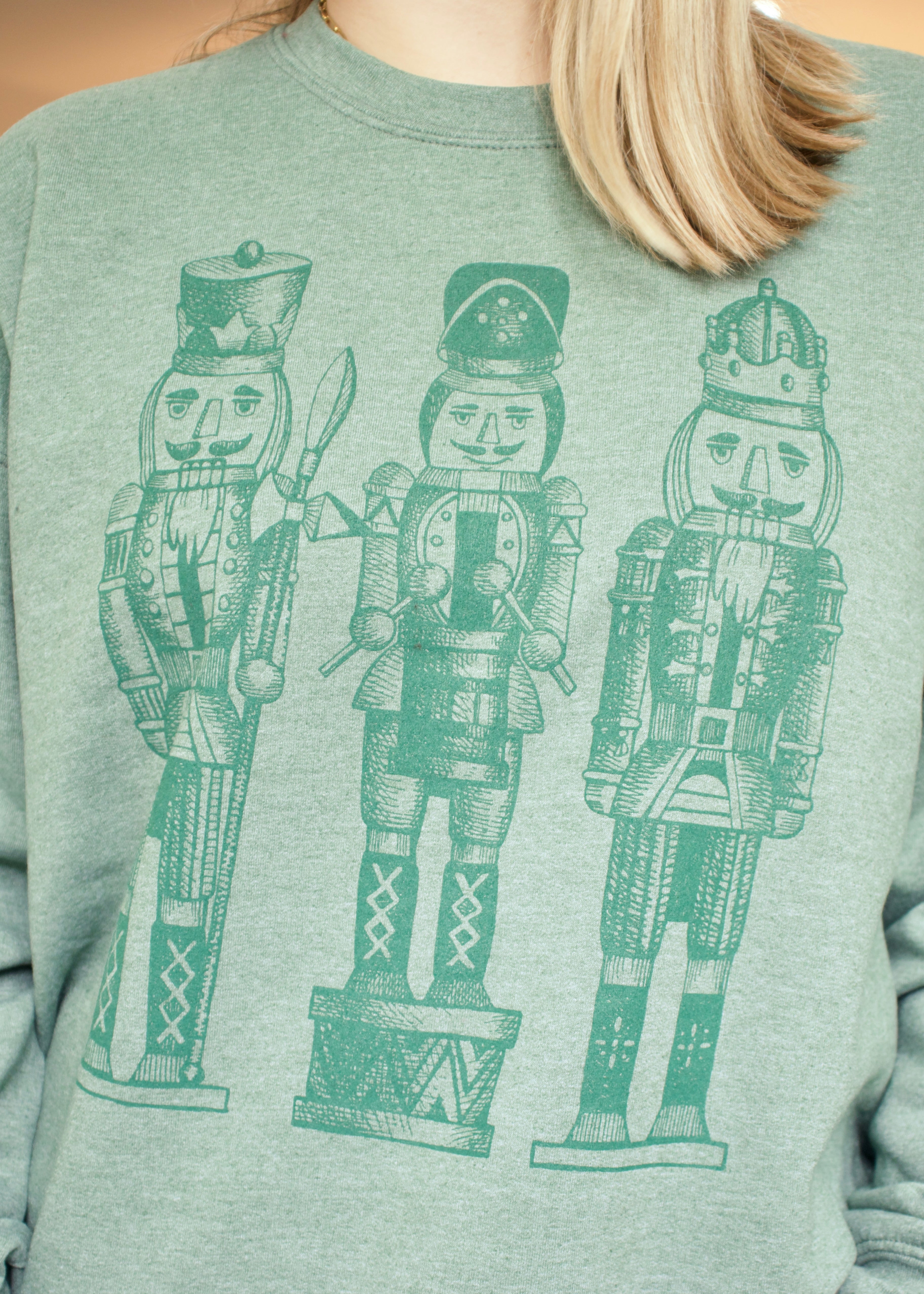Bring playful holiday vibes with this Forest Monochrome Nutcracker Sweatshirt! Its eye-catching black and white nutcracker graphic adds festive charm to your casual rotation. Cozy, fun, and undeniably charming—the perfect way to celebrate in style.