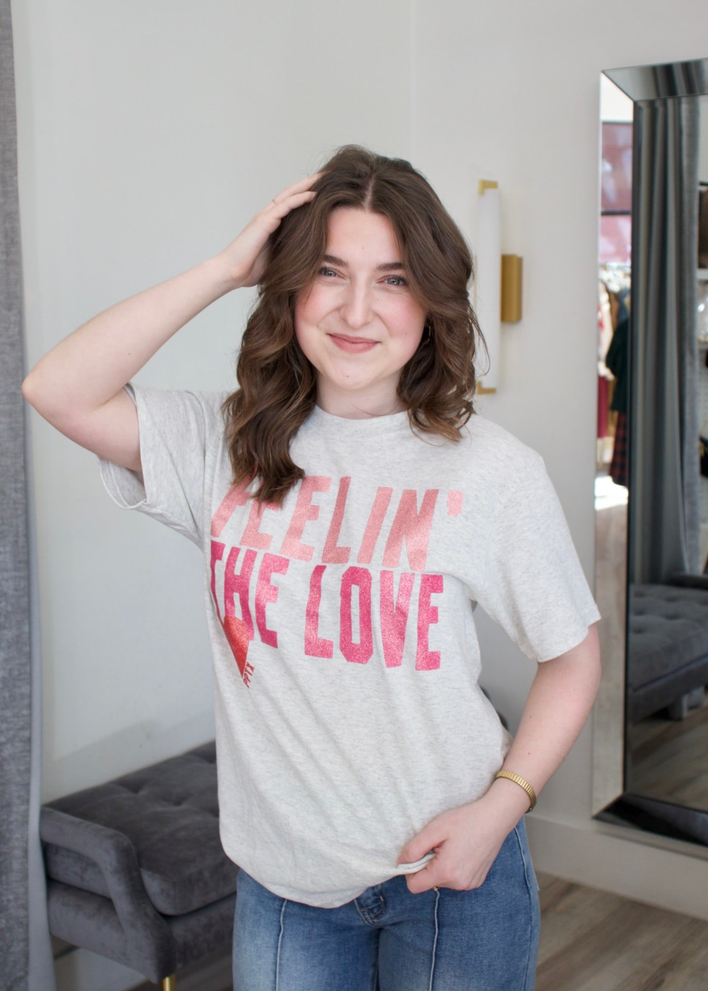 Spread the love in our Feelin' the Love Tee! This lightweight and comfy t-shirt is the perfect addition to your wardrobe. It fits true to size, ensuring a comfortable and stylish wear.