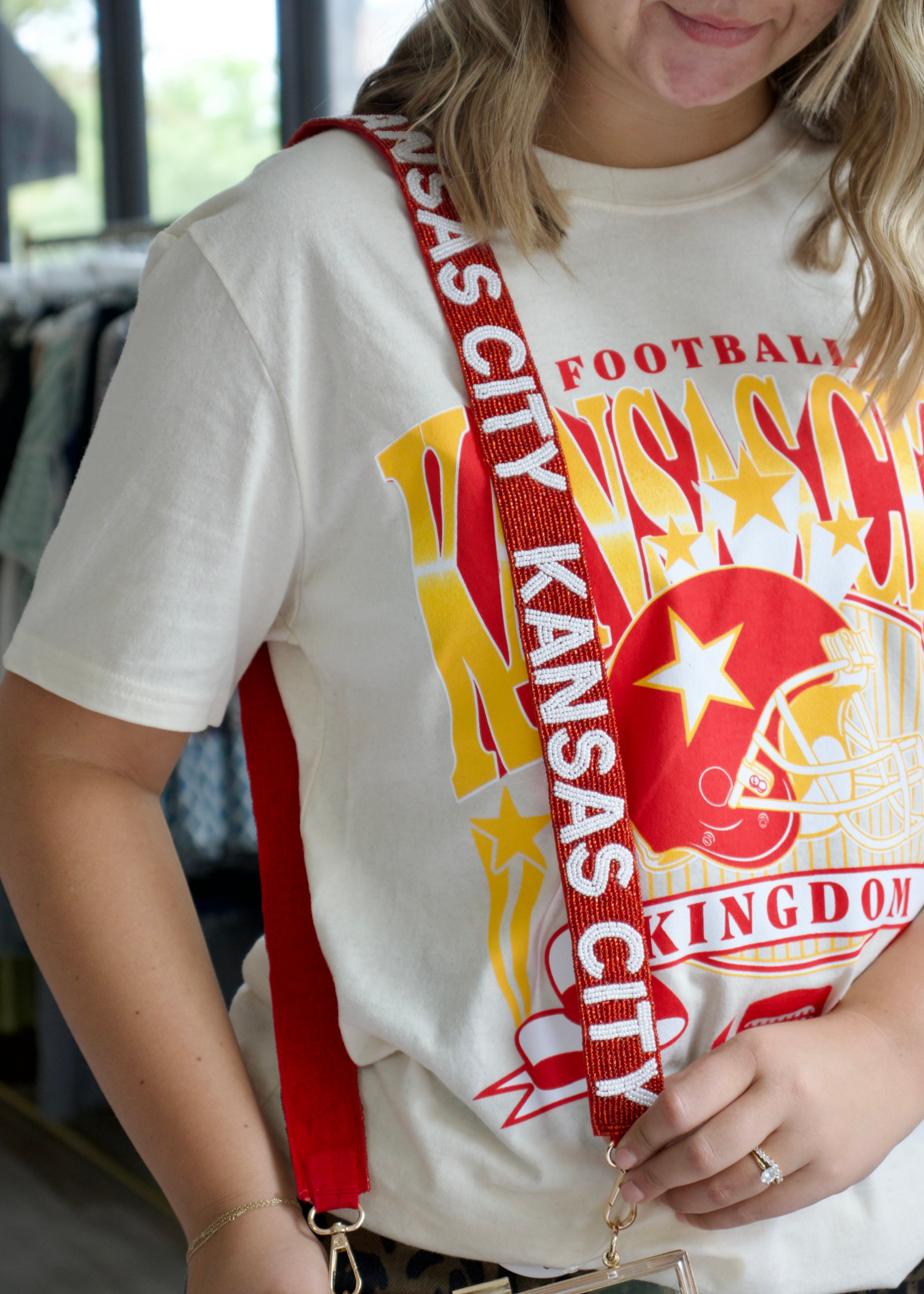 Show your Kansas City pride with these vibrant beaded purse straps. Designed for fans who want to add a personalized touch to their bags, each strap features rich red and white beads that celebrate your team’s colors. Durable and stylish, these straps provide a comfortable fit and a distinctive look, perfect for game days or everyday wear. Elevate your purse with a unique accessory that highlights your loyalty and stands out in any crowd.