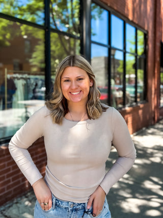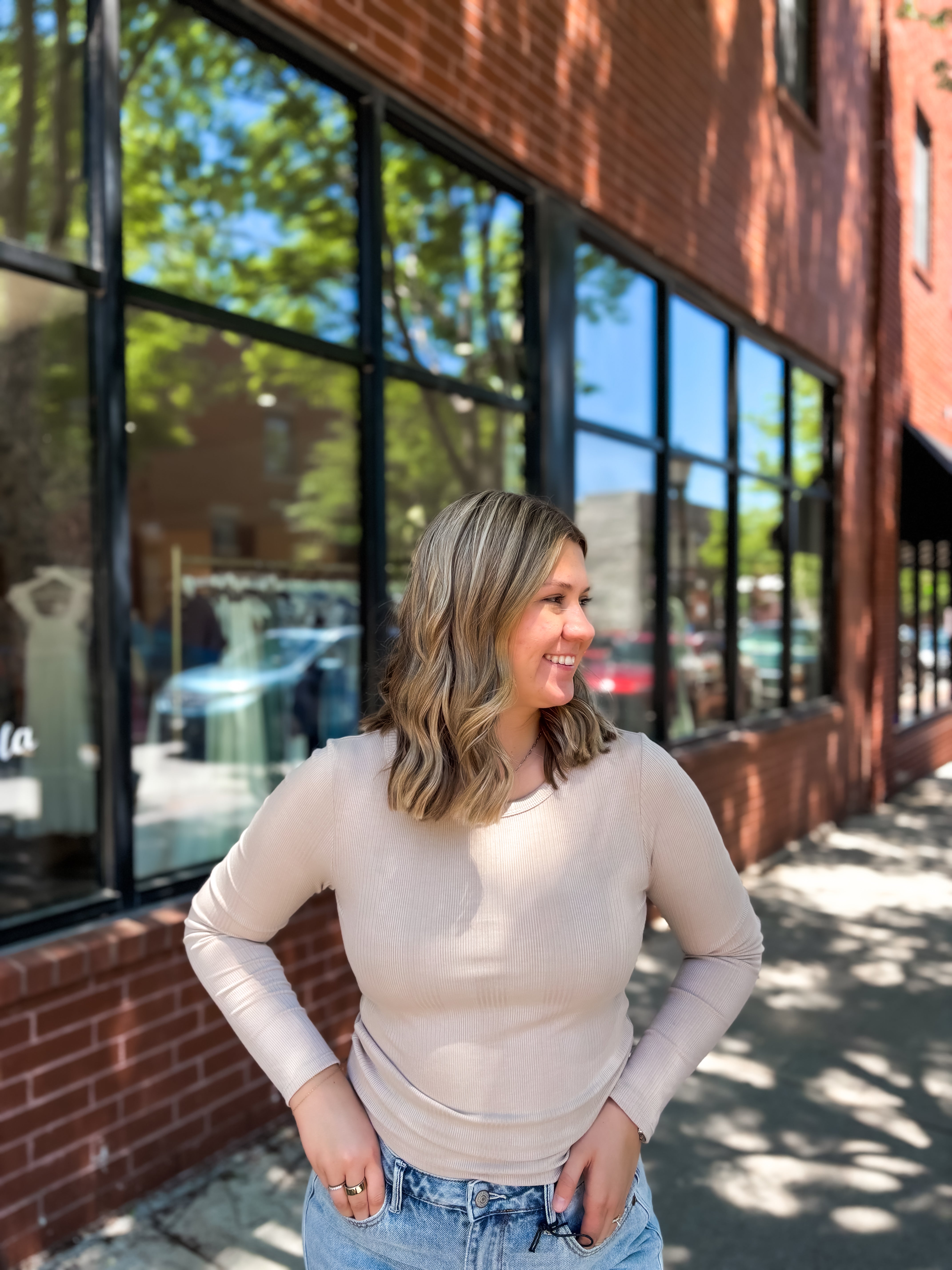 Elevate your everyday style with our Infinity Fitted LS Tee in sophisticated Parchment. This ZSupply basic features a flattering bodycon silhouette that accentuates your curves while the ribbed texture adds visual interest and comfort. The versatile oatmeal parchment hue pairs effortlessly with everything in your wardrobe, making this long sleeve essential your new go-to for both casual outings and layered looks.