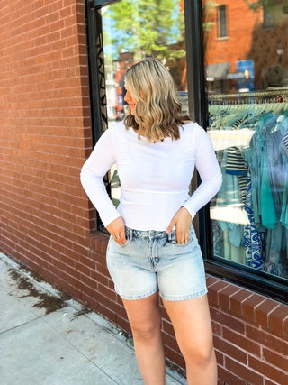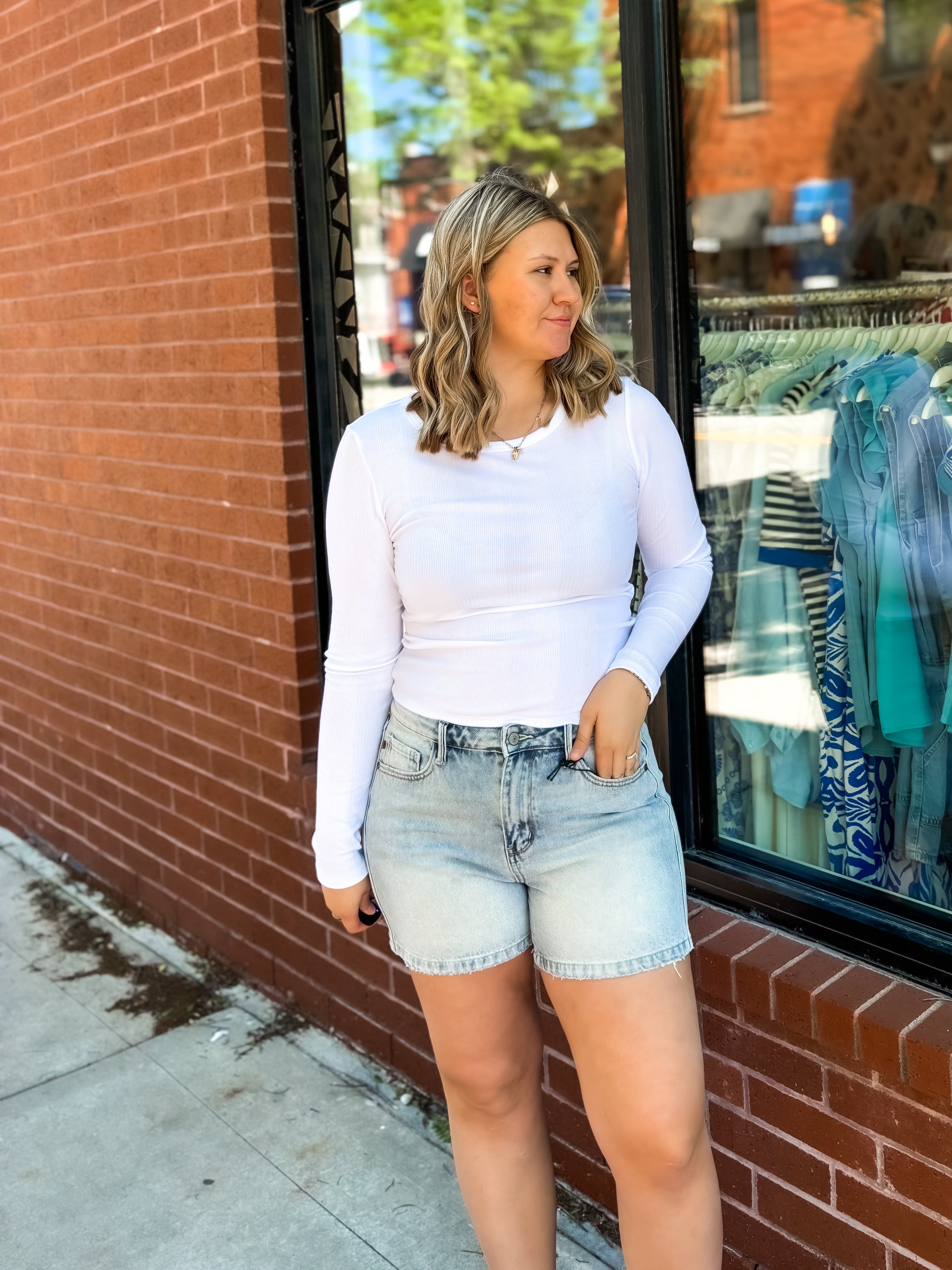 Elevate your everyday style with our Infinity Fitted LS Tee in crisp white. This ZSupply basic features a flattering ribbed texture and form-fitting silhouette that accentuates your curves while providing exceptional comfort. Perfect for layering or wearing solo, this versatile long sleeve top transitions effortlessly from season to season, making it an indispensable addition to your wardrobe essentials.