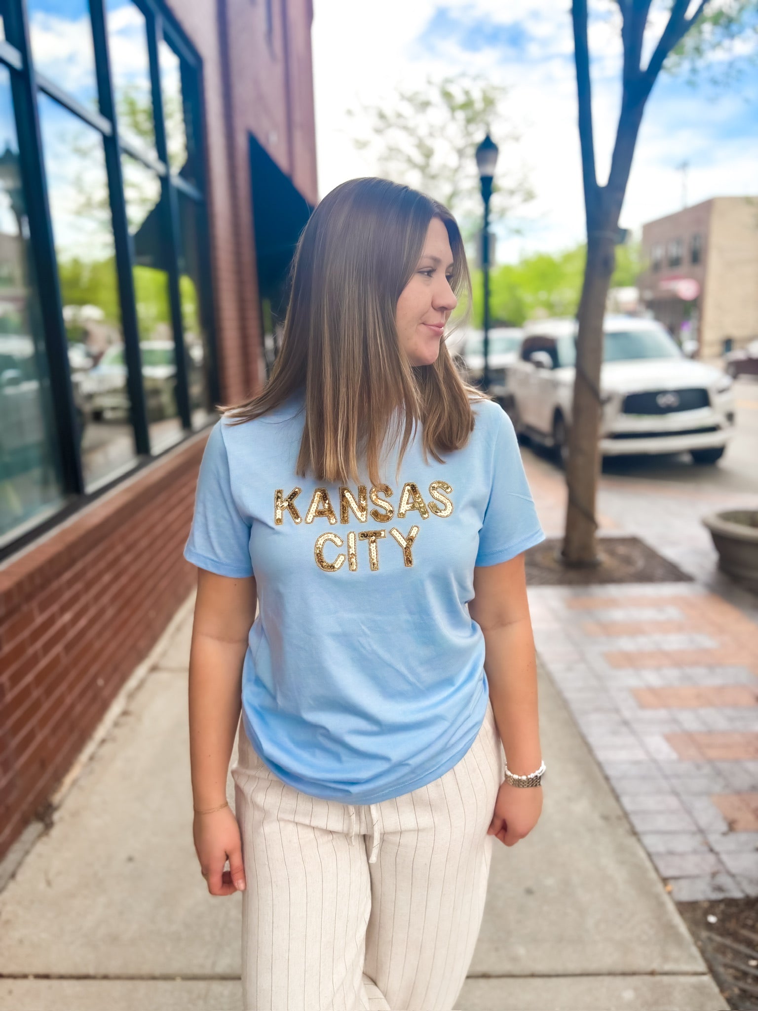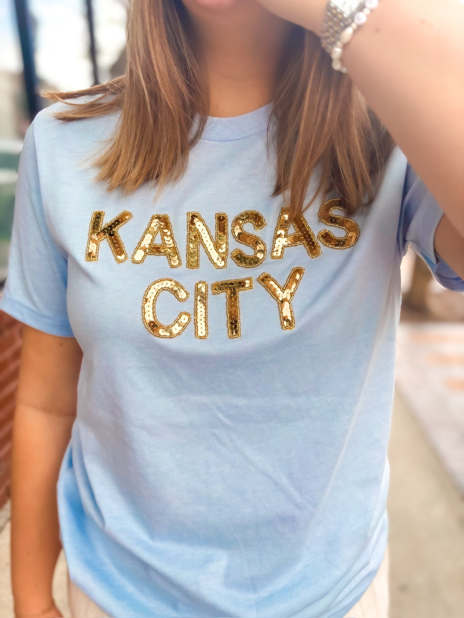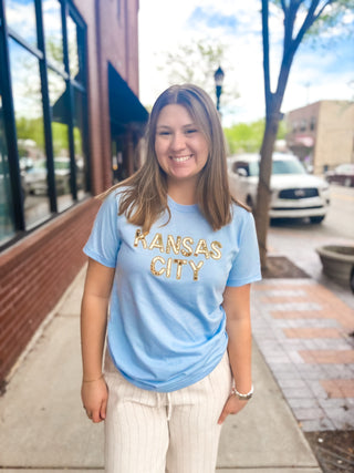 Represent your love for Kansas City with our vibrant Sequin Tee! Sparkling sequins add a touch of glamour while showing off your pride for this iconic city. Stand out and make a statement with this must-have piece!
