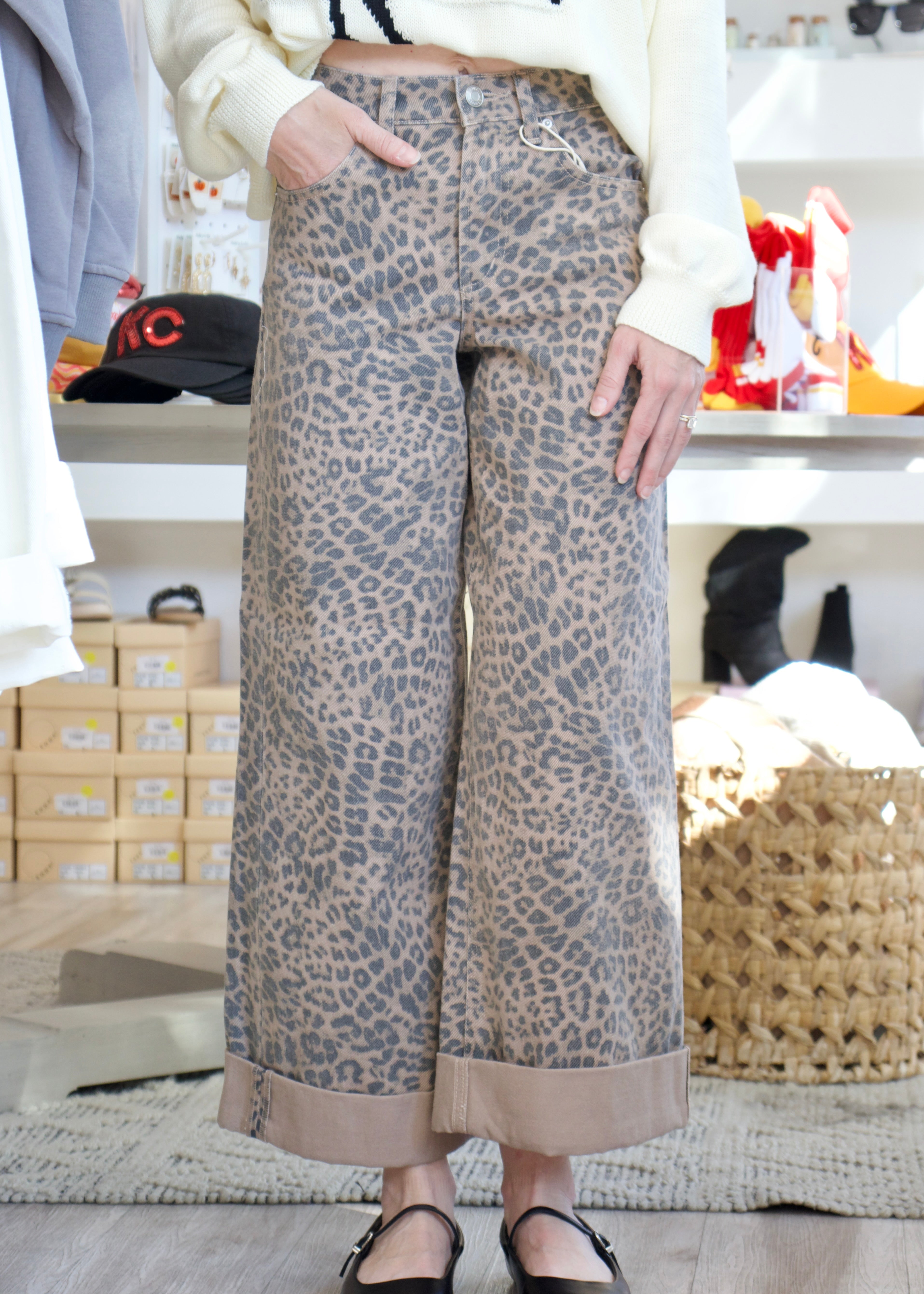 Step into bold comfort with the Marli Denim Leopard Pant by ZSupply. Featuring a high waist and wide-leg cut, these desert tan denim pants blend fierce leopard print with relaxed style. Perfect for showcasing your confidence, they offer a flattering fit and easy movement, making them an essential piece for standout casual looks. Upgrade your wardrobe with these effortlessly cool, statement-making pants.